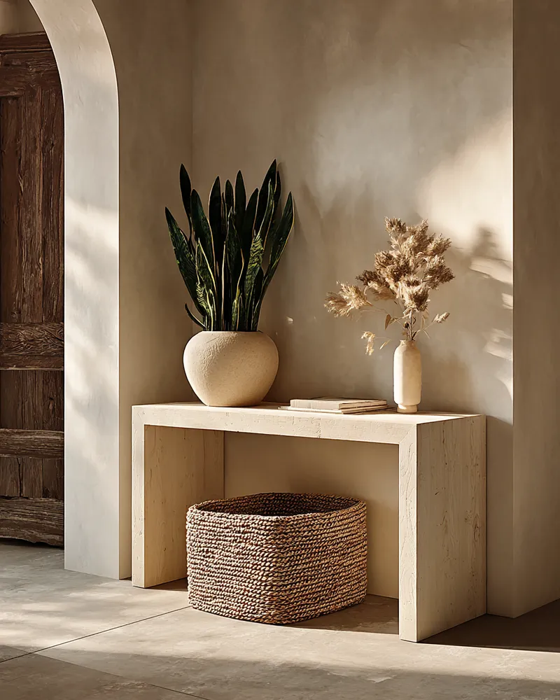 Your entryway console table is the first impression of your home. Japandi styling keeps it clean, functional, and serene. ✨ Think about balance: a few key pieces that are both beautiful and useful. A simple ceramic vase with a single stem, a minimalist tray for keys, and a small stack of art books are perfect. Consider a small lamp for a warm glow. Natural materials like wood, ceramic, and stone are key. Avoid clutter! The less, the more; each item should be intentionally chosen. Save this for your console styling inspo! 💡 #consoletableideas#japandiideas#entrywaydecorideas#minimaliststylingideas#decorideas#japandi#entrywaydecor#stylinginspiration#cleanlines#harmonious