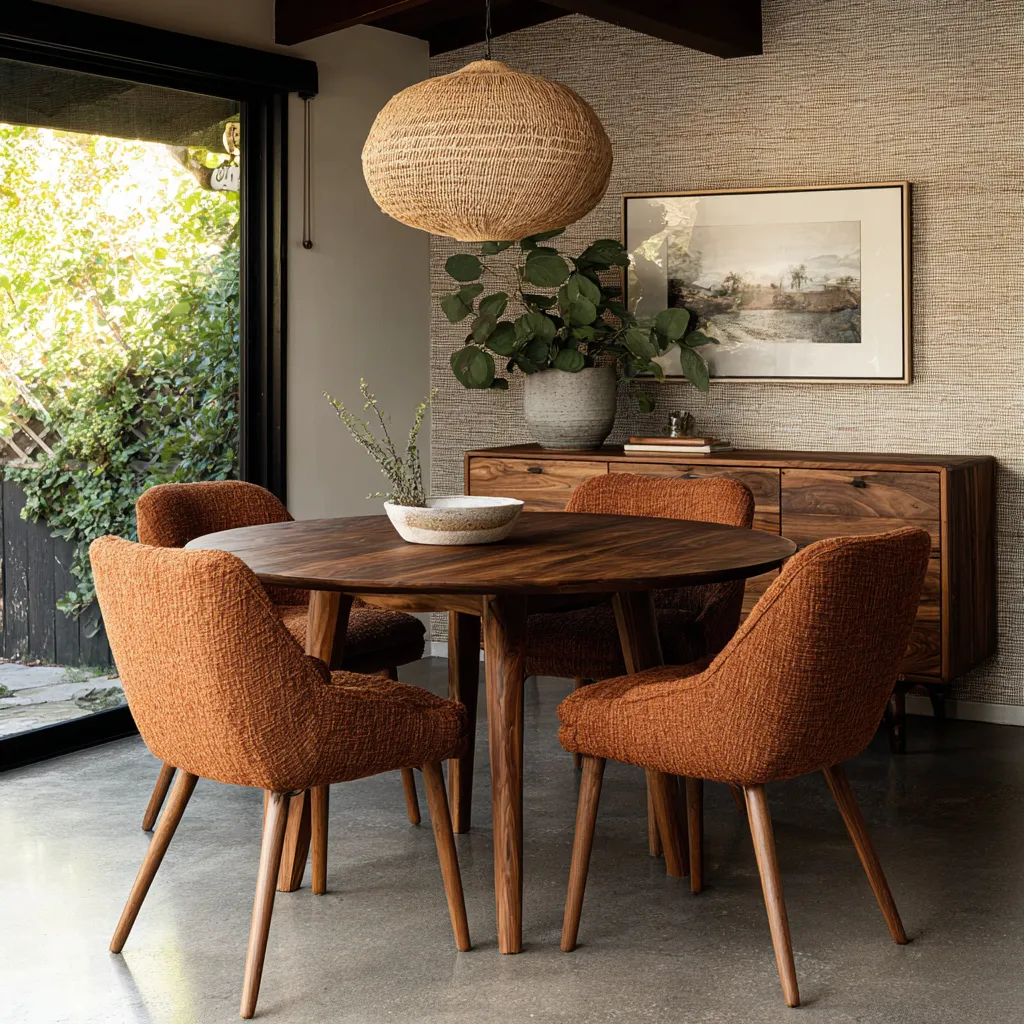Infuse your dining room with the iconic charm and tactile appeal of the 70s! Think organic shapes, warm woods, and rich, inviting textures that make every meal feel special. 🎶
