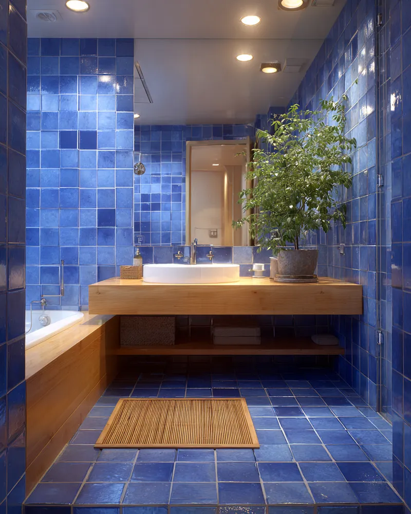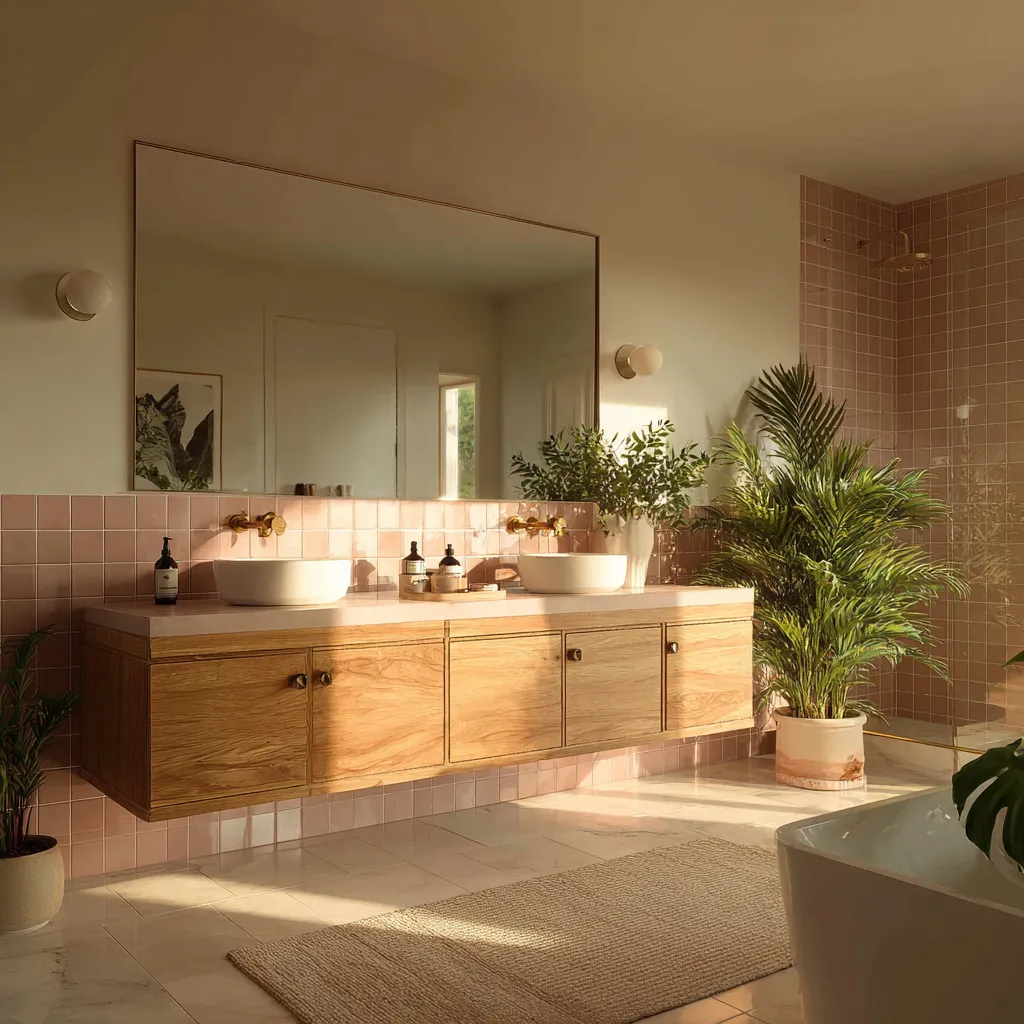 * Tiles in earthy hues like beige, terracotta, or muted green.