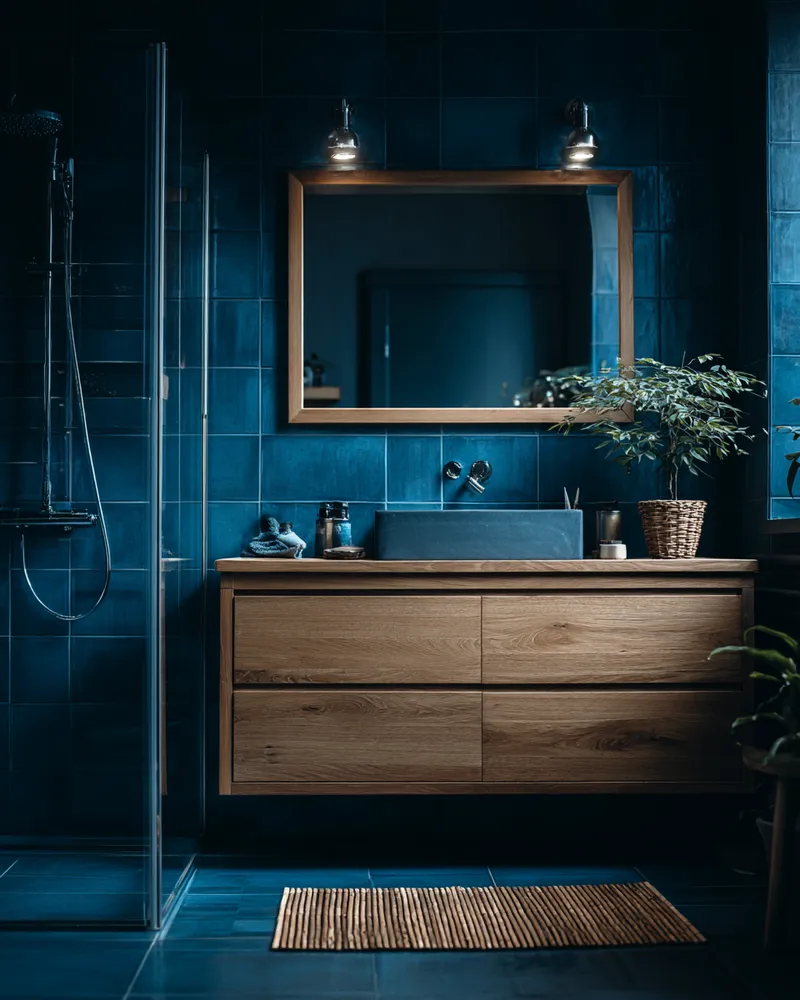 Bring the calming essence of the 70s into your bathroom with a focus on warm wood tones and a serene earth palette. It's about creating a tranquil retreat. 🎶