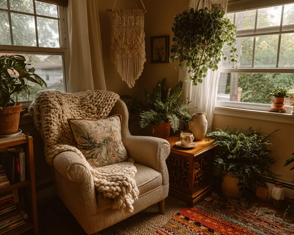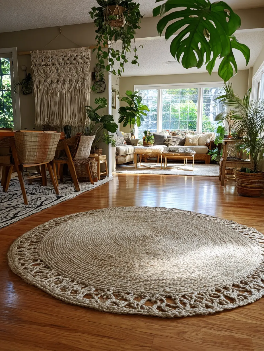 Think jute rugs for that cozy foundation, macrame plant hangers to bring the outdoors in, or even macrame wall art for a statement piece.