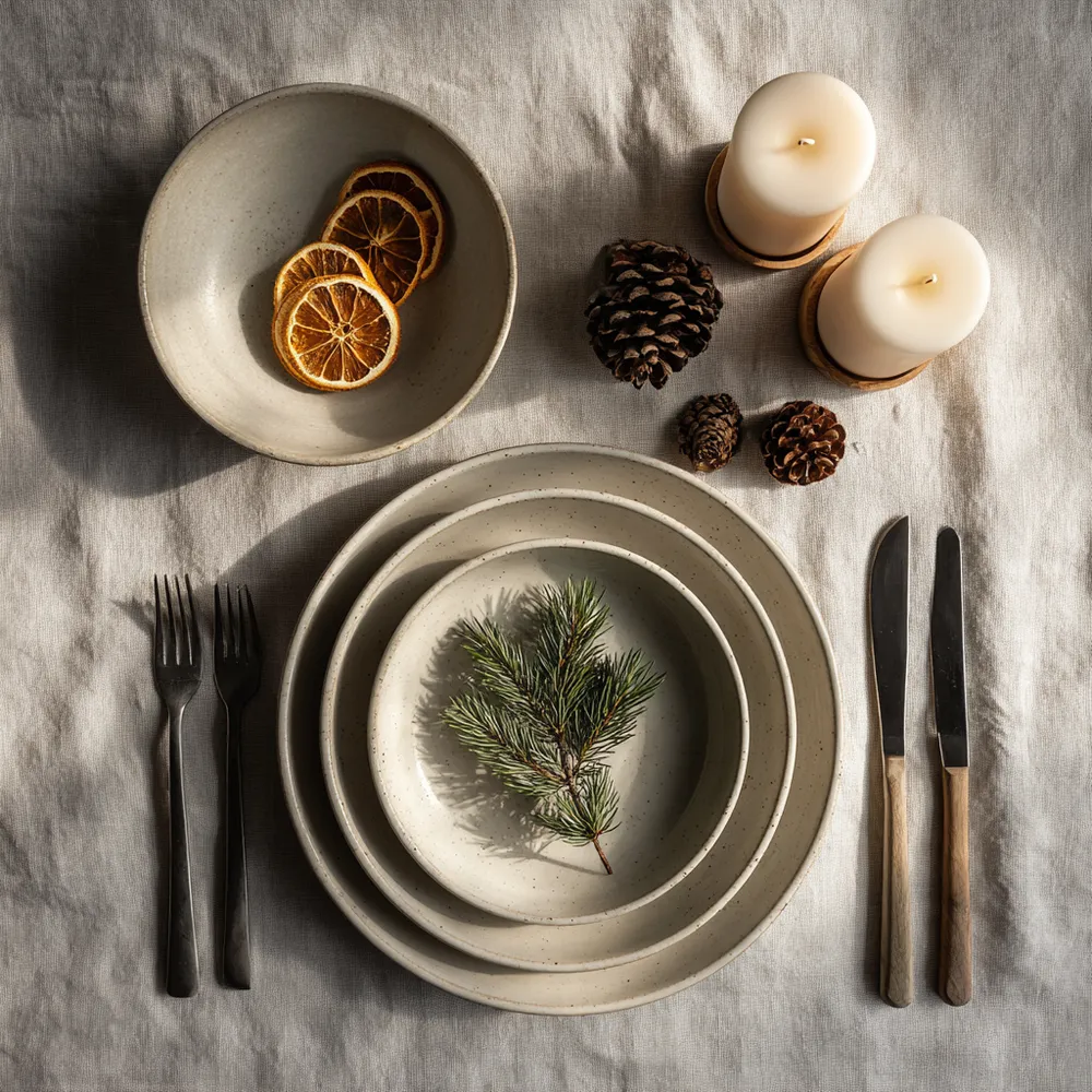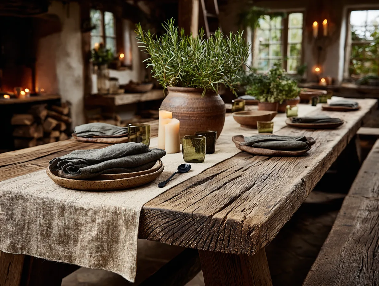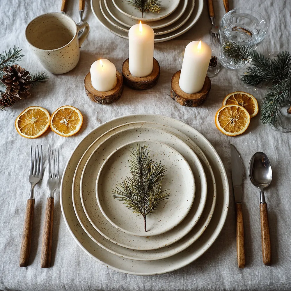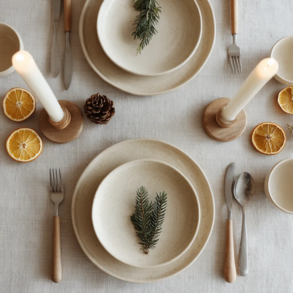 Think natural linen placemats or runners, wooden cutlery, and ceramic tableware. Opt for reusable cloth napkins instead of paper. 🌿