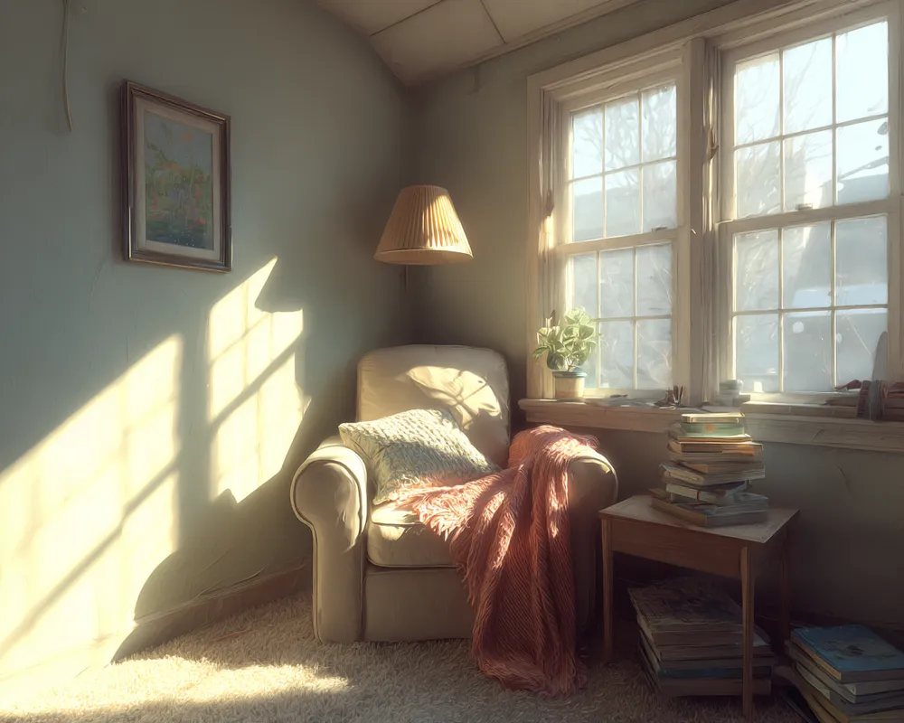 My Cozy Reading Nook: Indigo Textures & Warm Light ๐๐ก