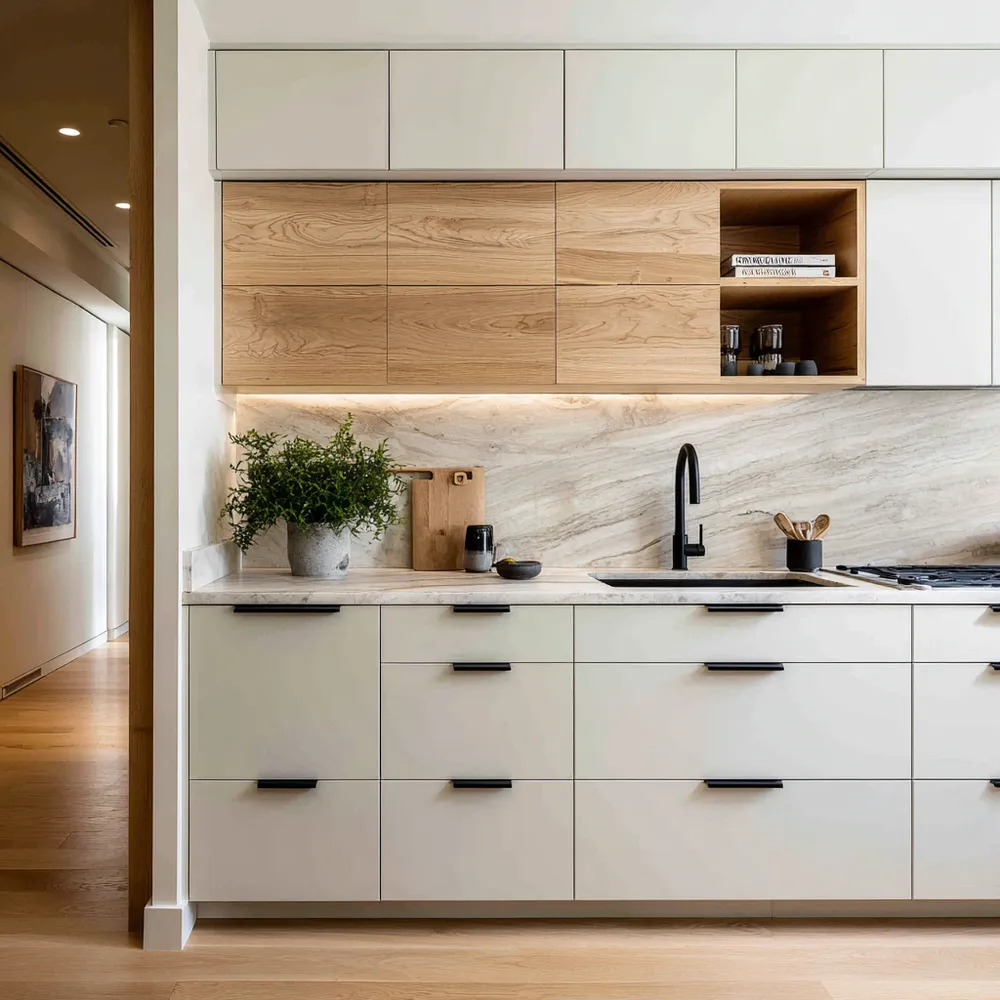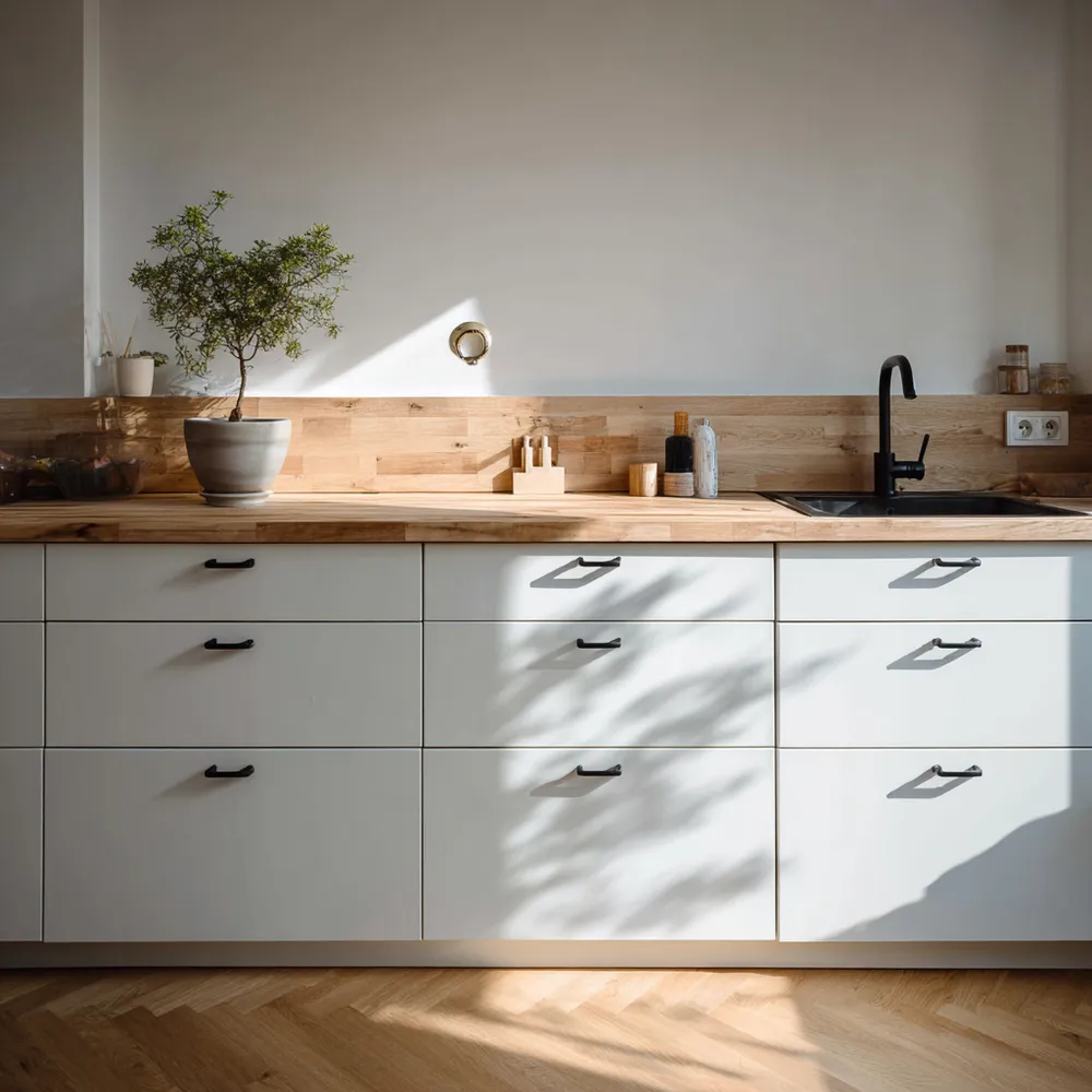 Key to this Japandi kitchen feel: