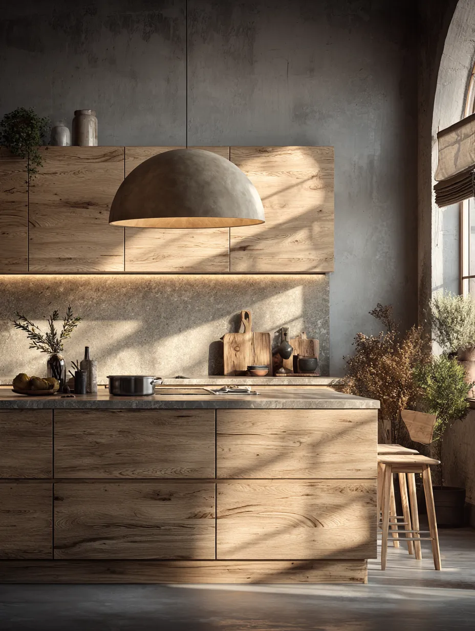 * **Ambient Light:** Pendant lights over an island or dining area, with natural shades like wood or paper, create a gentle glow.