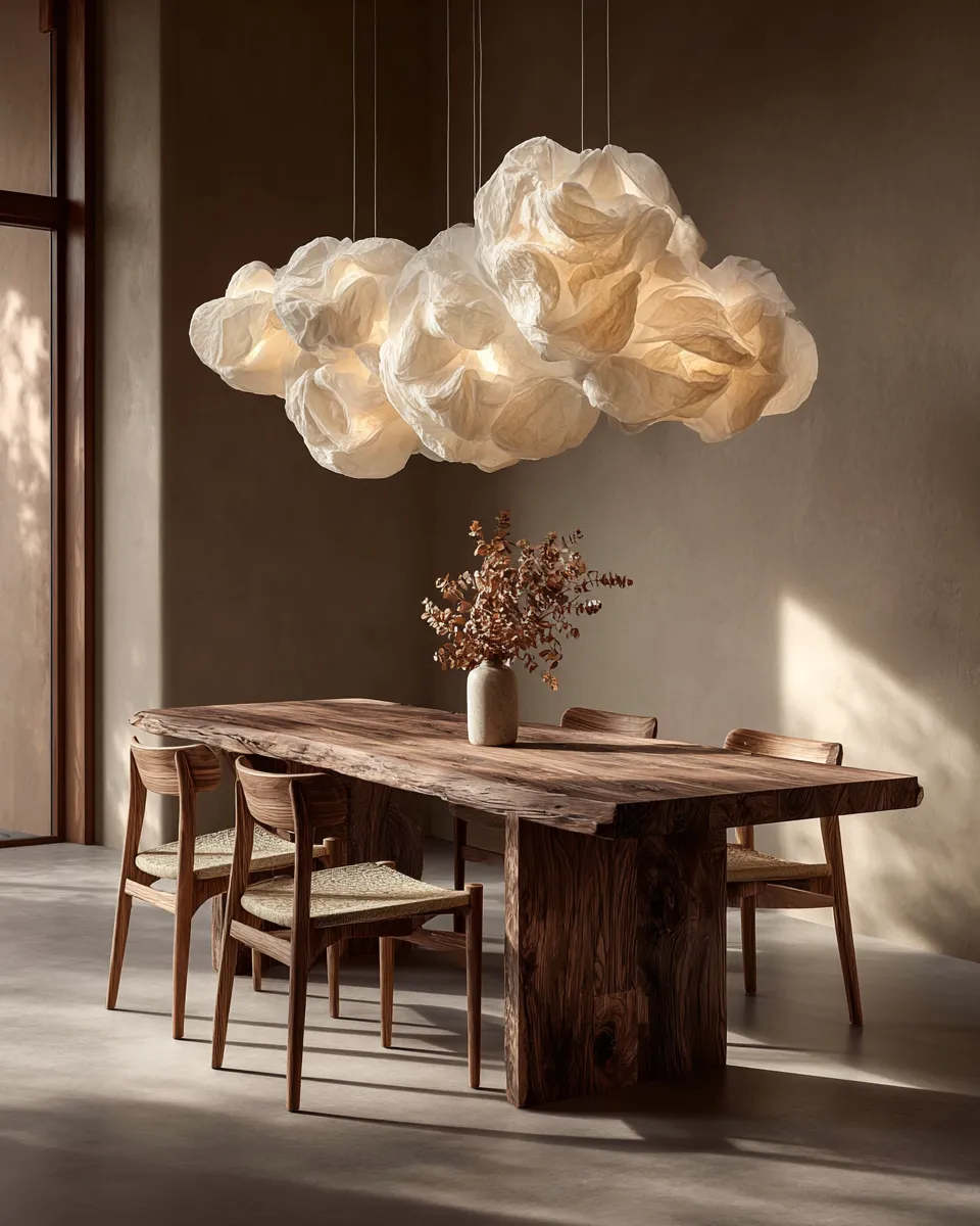 Make every meal a moment of calm and connection. Save this for your dining room refresh! #japandi#diningroomideas#homedecorinspo#interiordesign#japandiideas#diningideas#ambientlighting#naturalmaterials#lightandshadow#mindfulmoments
