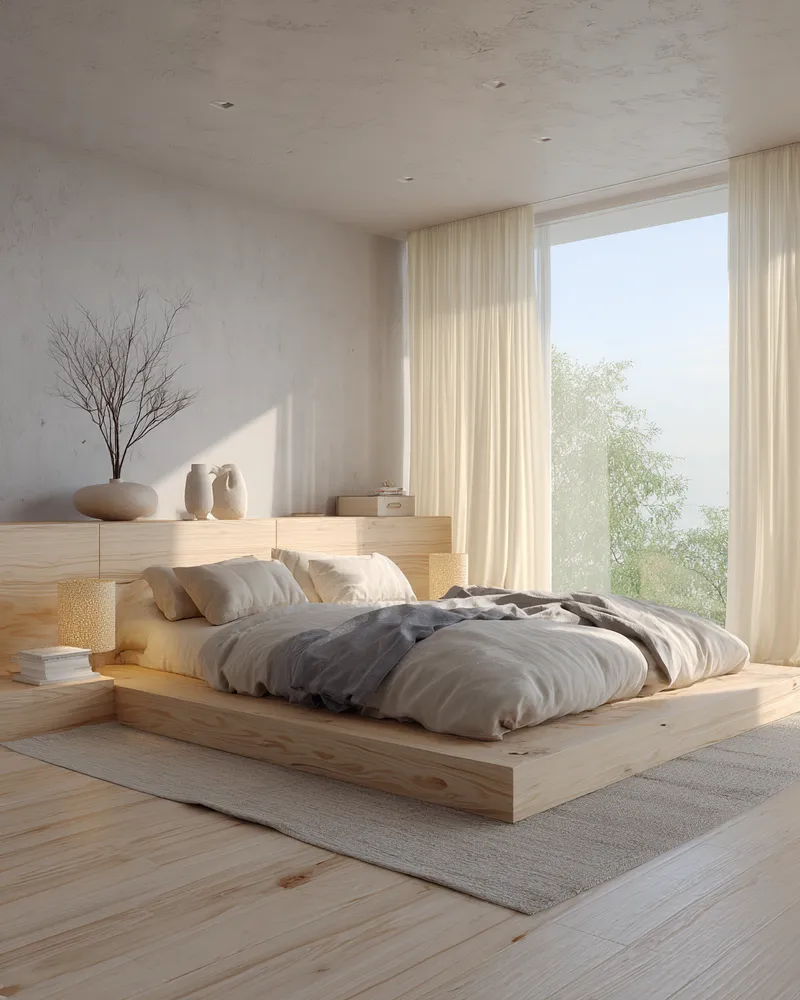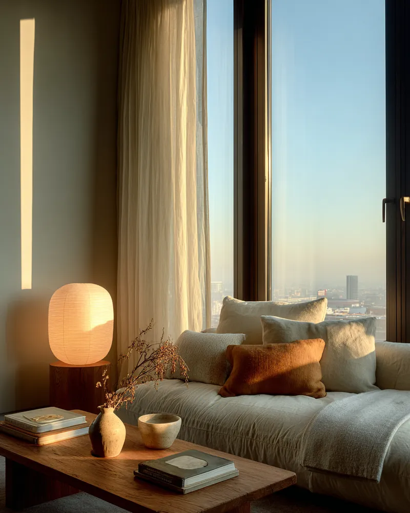 Create your dream Japandi bedroom by focusing on ambient lighting that fosters deep relaxation. ☀️