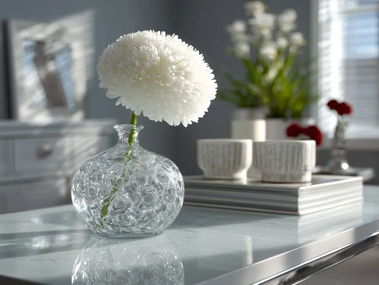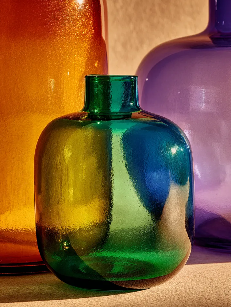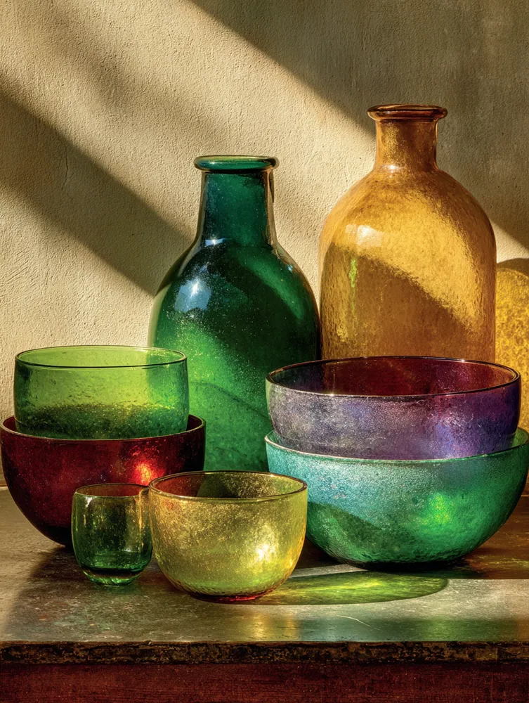 Let's play with light and reflection! ✨ Glass, in its many forms, adds an instant touch of sparkle and sophistication to any space. From delicate crystal vases to sleek glass tabletops and statement mirrors, its transparency and reflectivity are key.