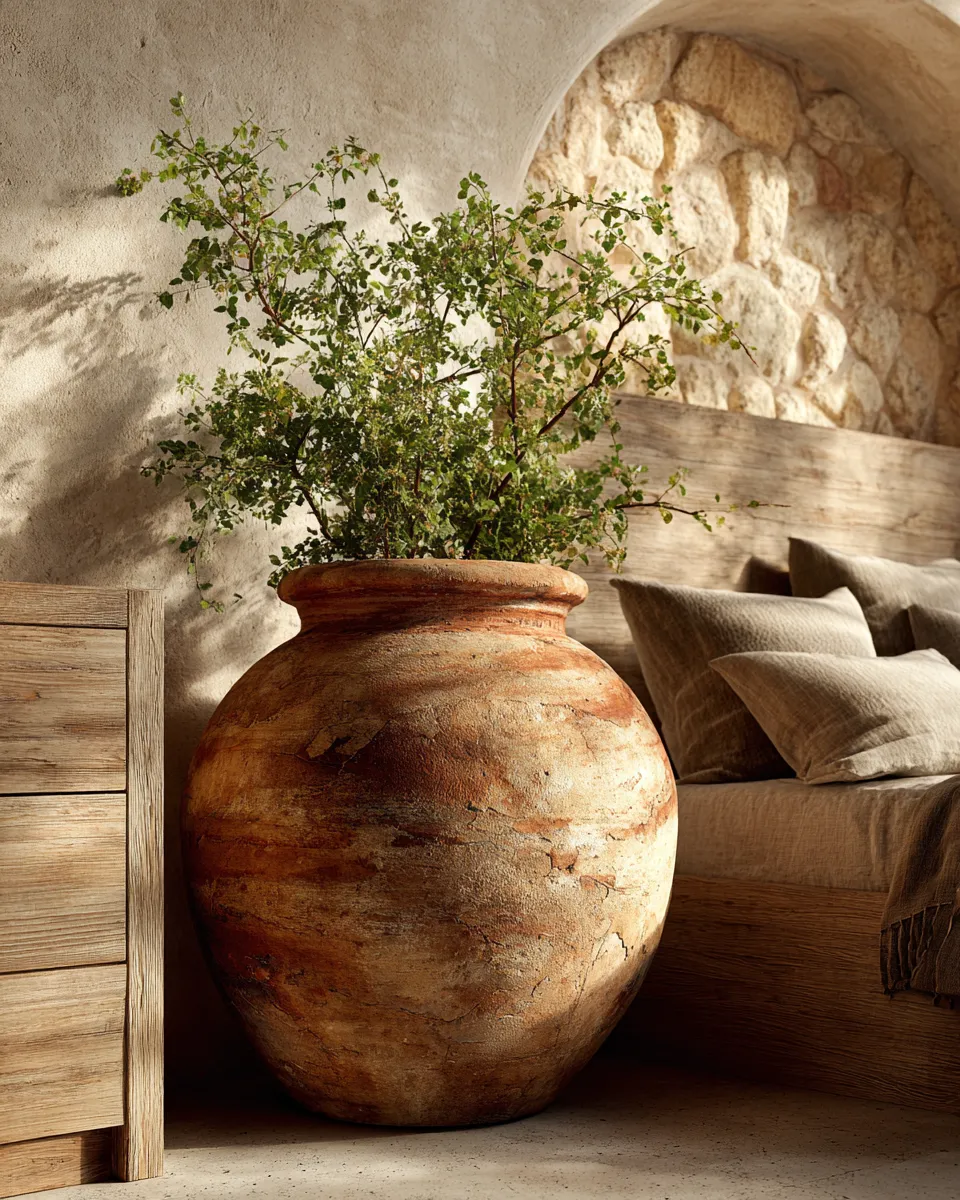 Its natural variations in color, from warm ochre to deep rust, create a cozy and inviting atmosphere. Terracotta pairs wonderfully with natural fibers like linen and wood, enhancing that organic, bohemian vibe.