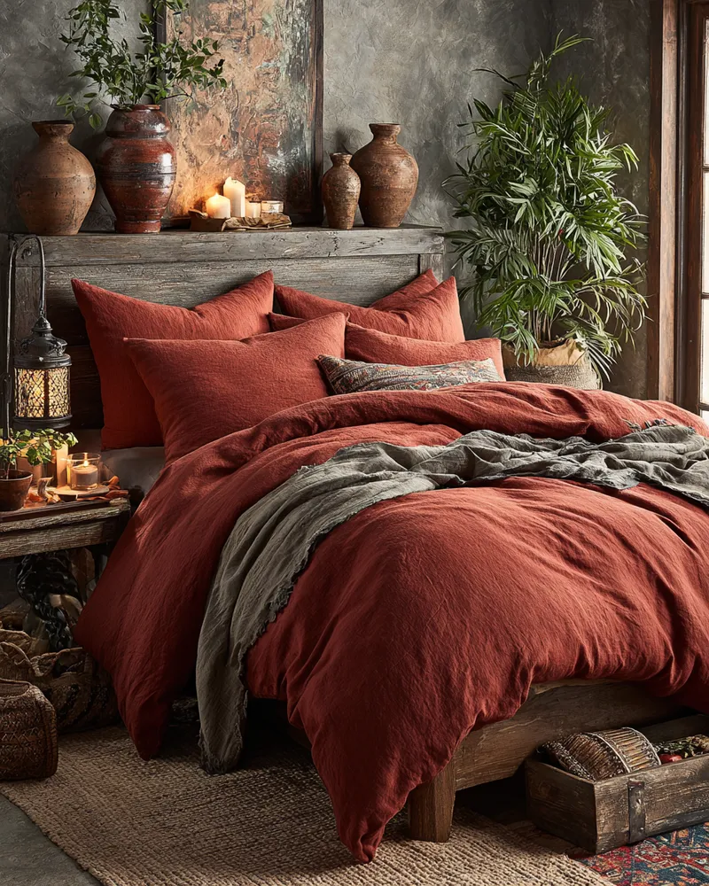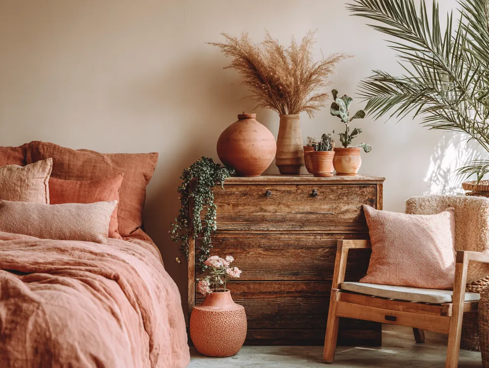 Add warmth and a grounded, earthy feel to your bedroom with the charm of terracotta! 🧱 This beautiful clay material, whether in decorative planters, textured accent walls, or subtle tiling, brings a rich, artisanal touch.