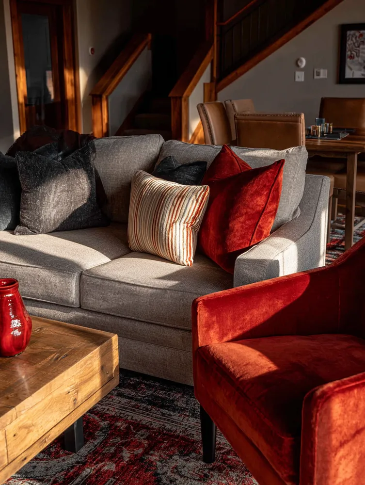 Crimson Comfort: Bold Red Accents for a Cozy Living Room! ❤️🛋️
