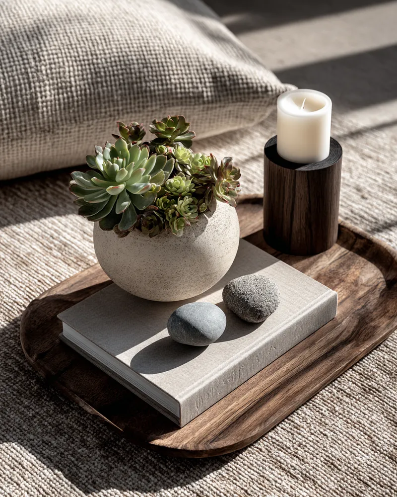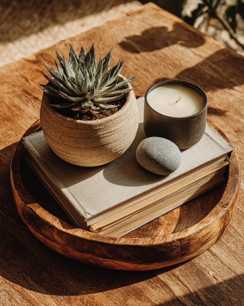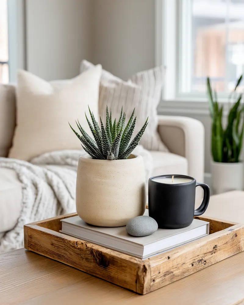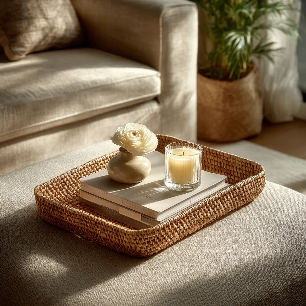 * **A Statement Tray:** In a natural material like light wood or a soft brushed metal.