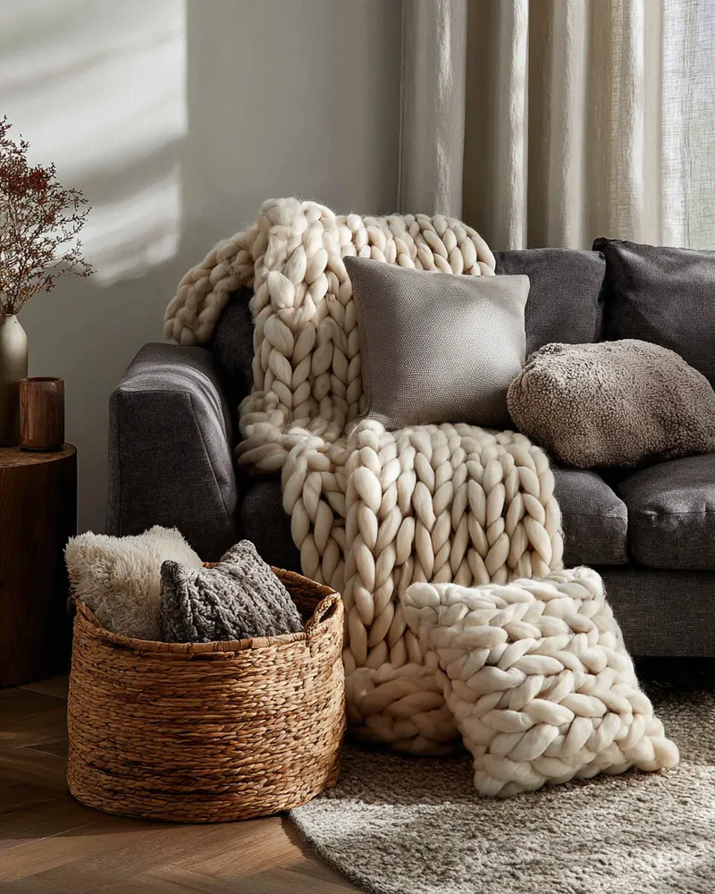 * **Chunky Knits:** Throws and cushions for cozy, tactile warmth.