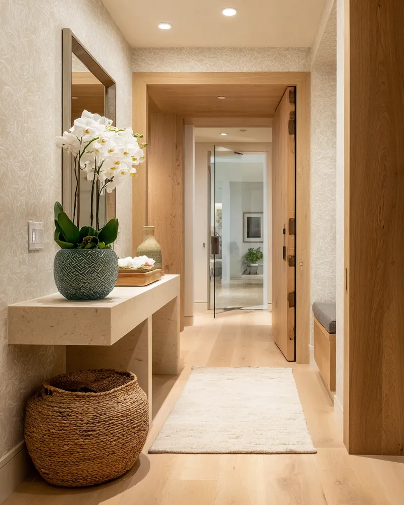 * **Natural Wood Grains:** Smooth, light-toned woods add organic warmth.