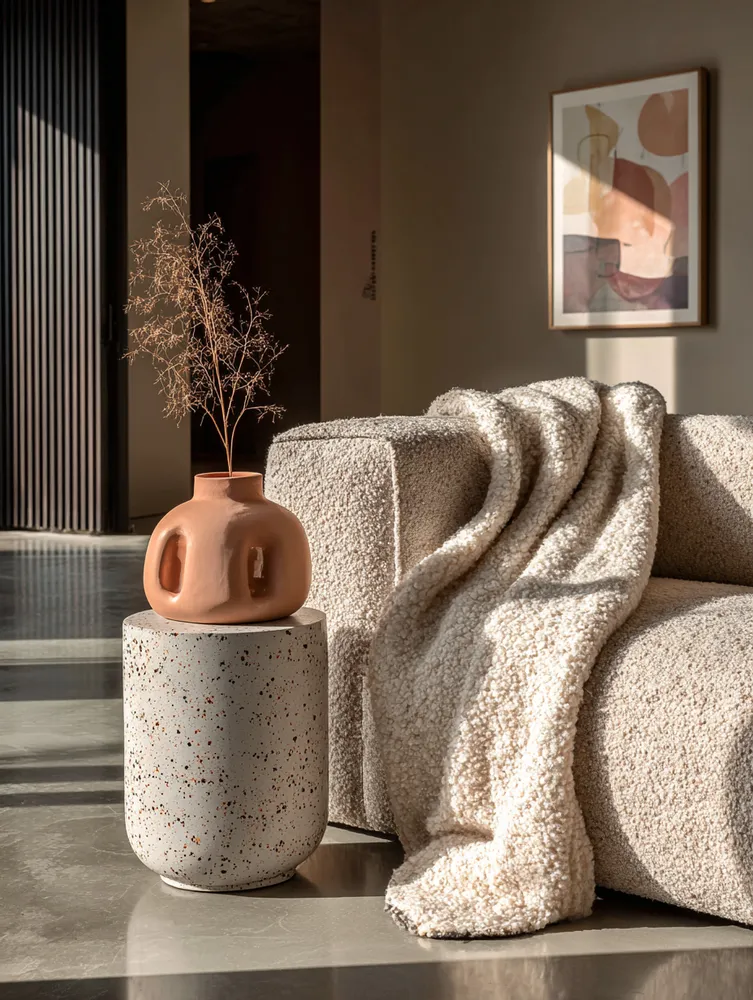 * **Textured Throws & Cushions:** In natural fibers like linen and soft wools.