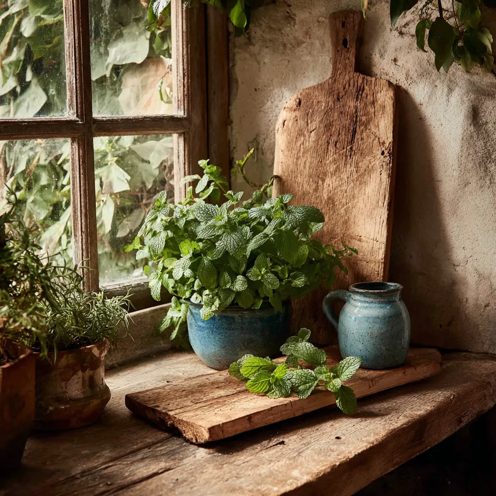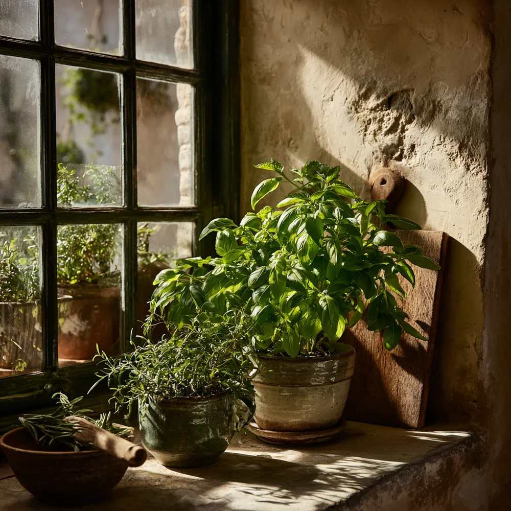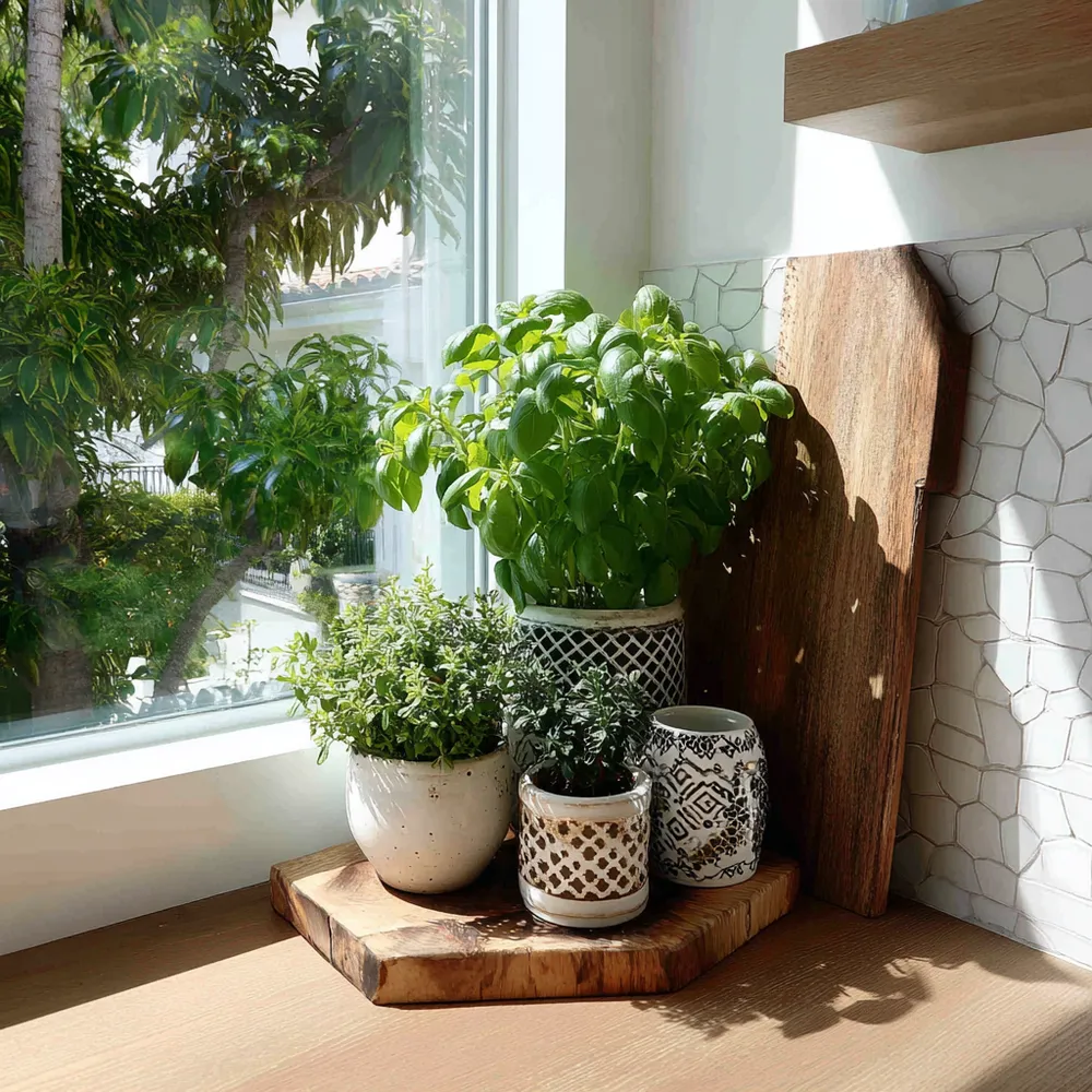 * **A Touch of Greenery:** A small herb plant or a single, elegant bloom.