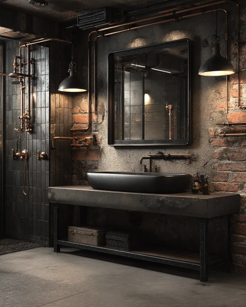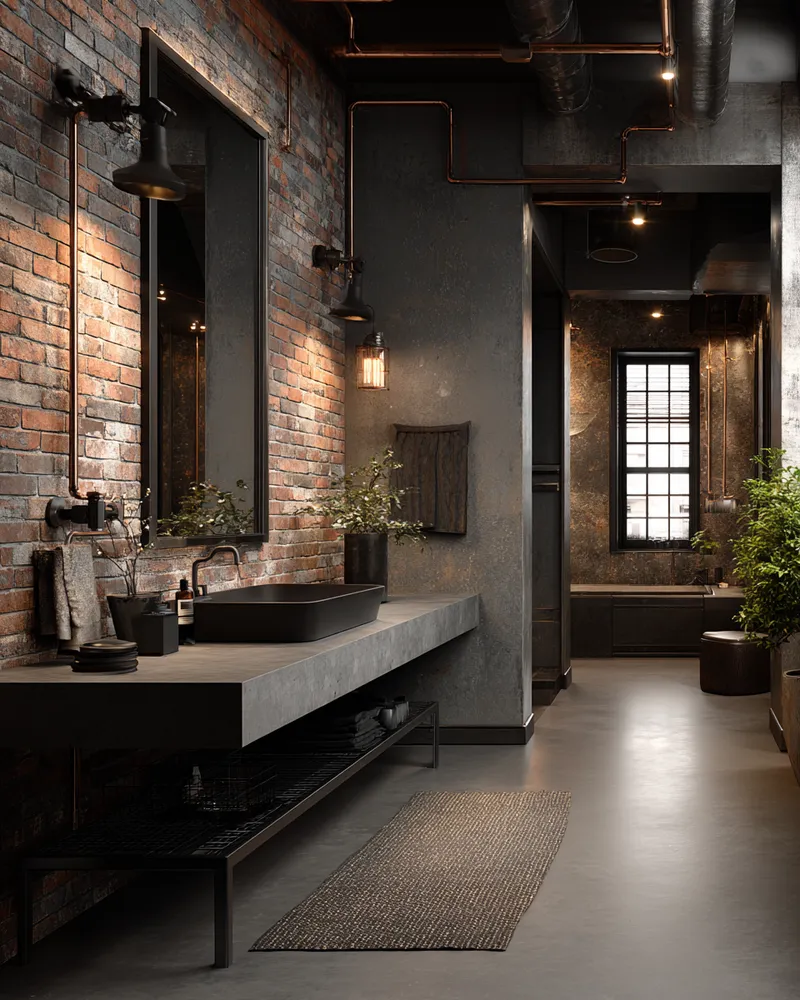 Industrial Loft Bathroom Goals: Raw Materials & Exposed Pipes ✨