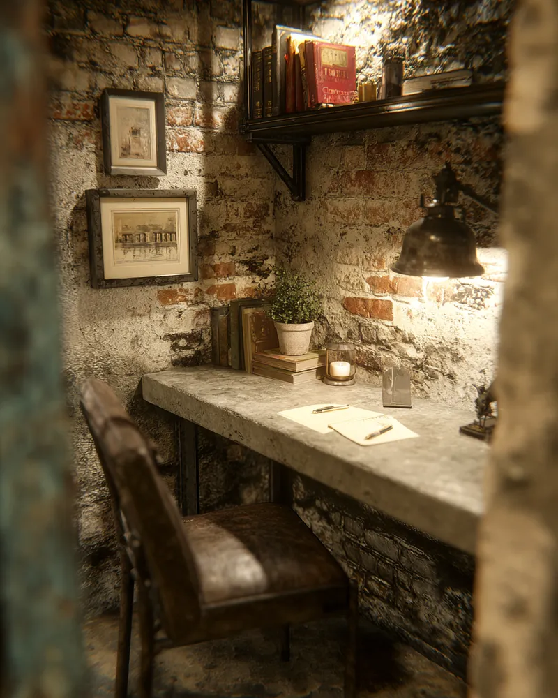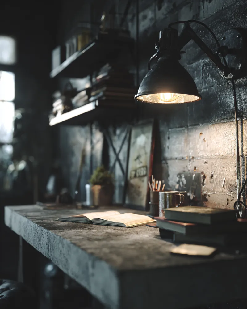 Concrete & Metal Accents: The Industrial Study Nook 📚
