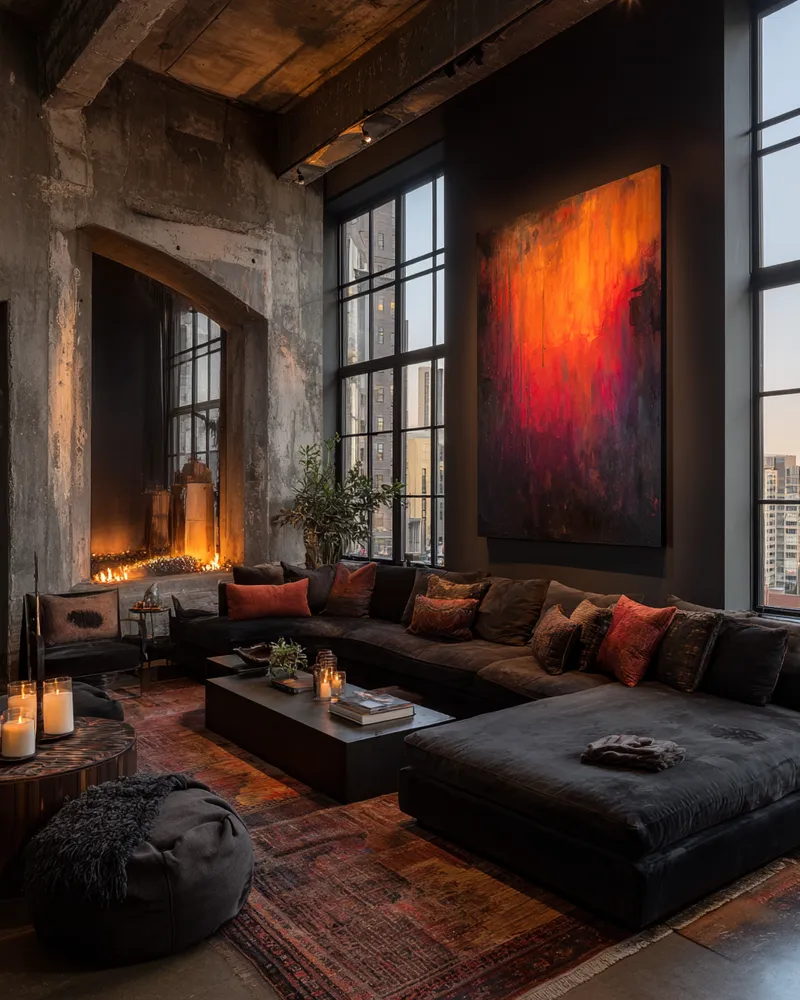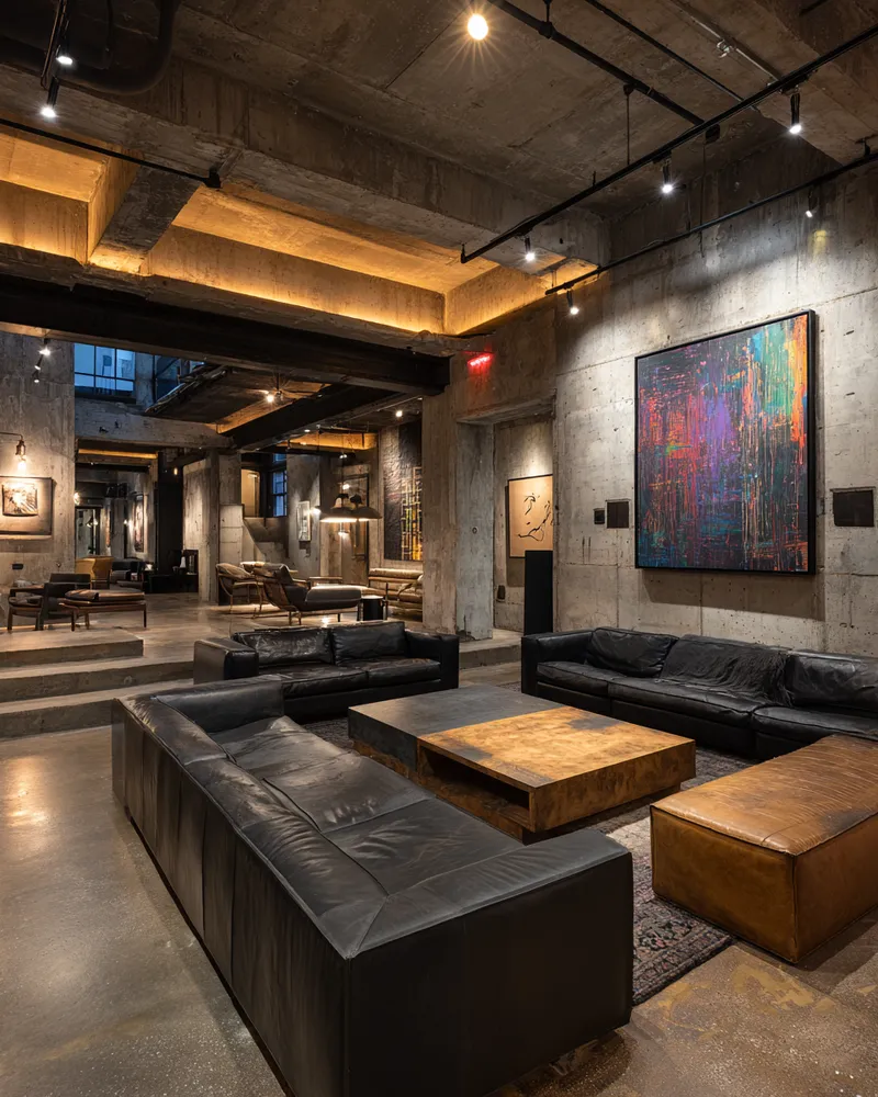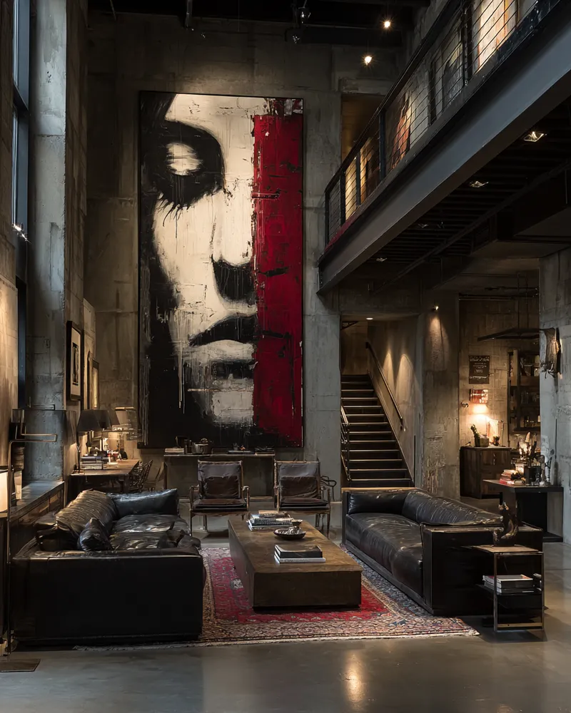 Raw Elegance: Elevating Industrial Lofts with Art & Concrete Walls ✨