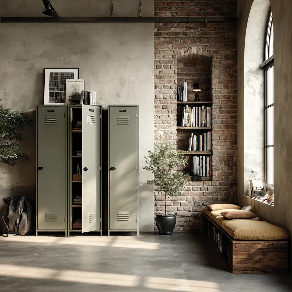 Industrial design can balance utility with hidden storage. Think beyond open shelves to incorporate cleverly disguised cabinets and wall units that maintain the raw aesthetic. * **Metal locker cabinets:** Classic industrial storage with a utilitarian charm. * **Hidden wall niches:** Within brick or concrete walls for subtle storage. * **Furniture with integrated storage:** Benches or tables with lift-up tops. What's your storage solution of choice?