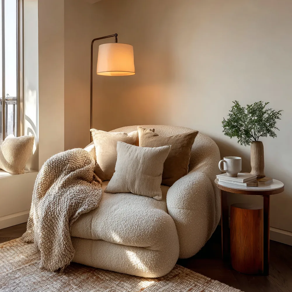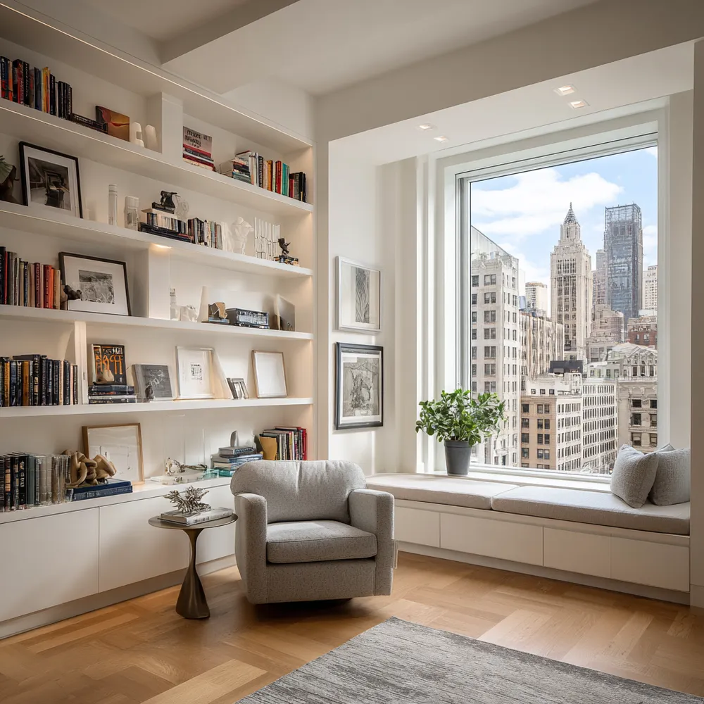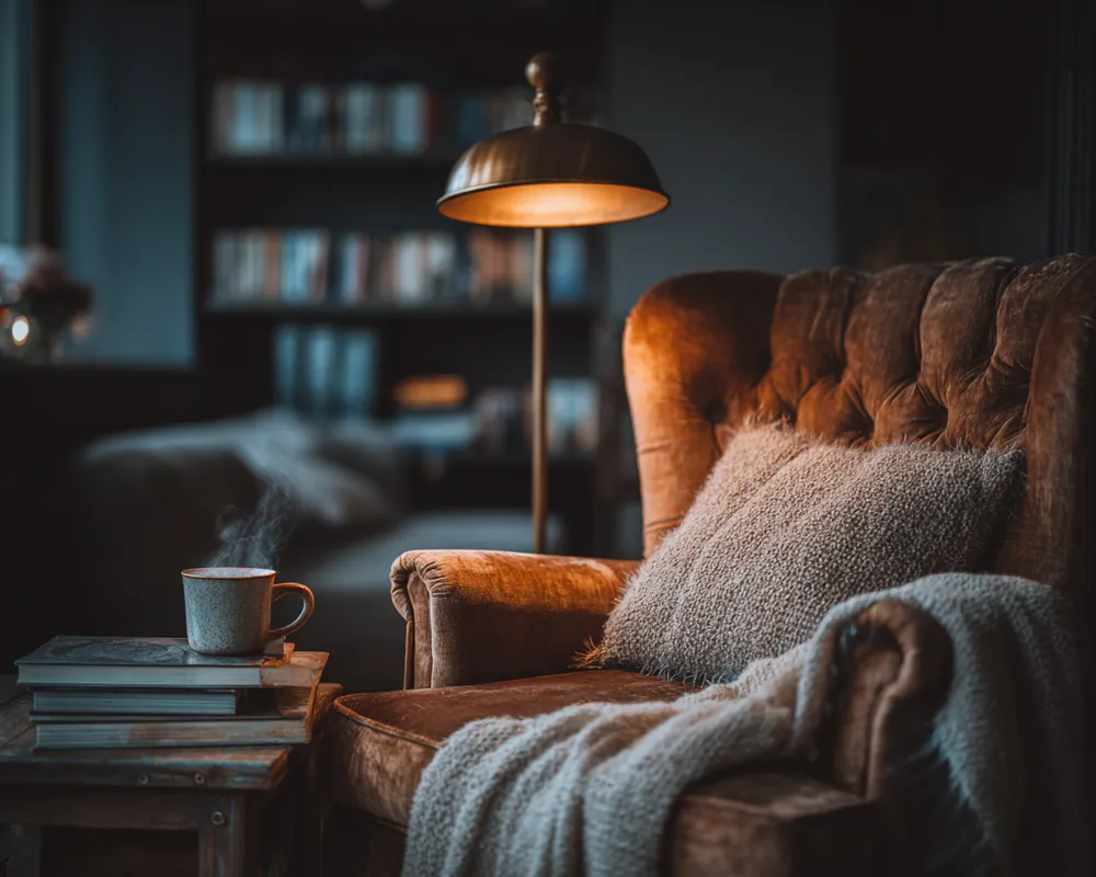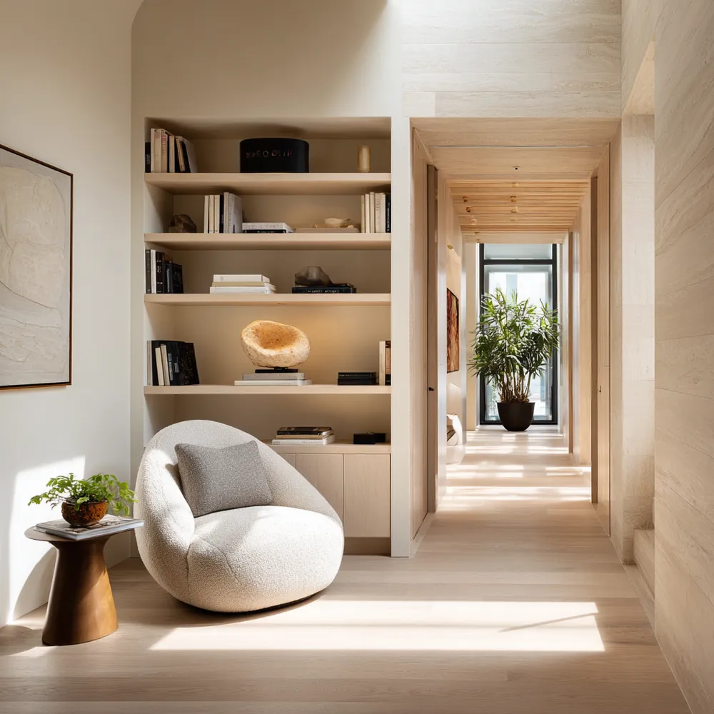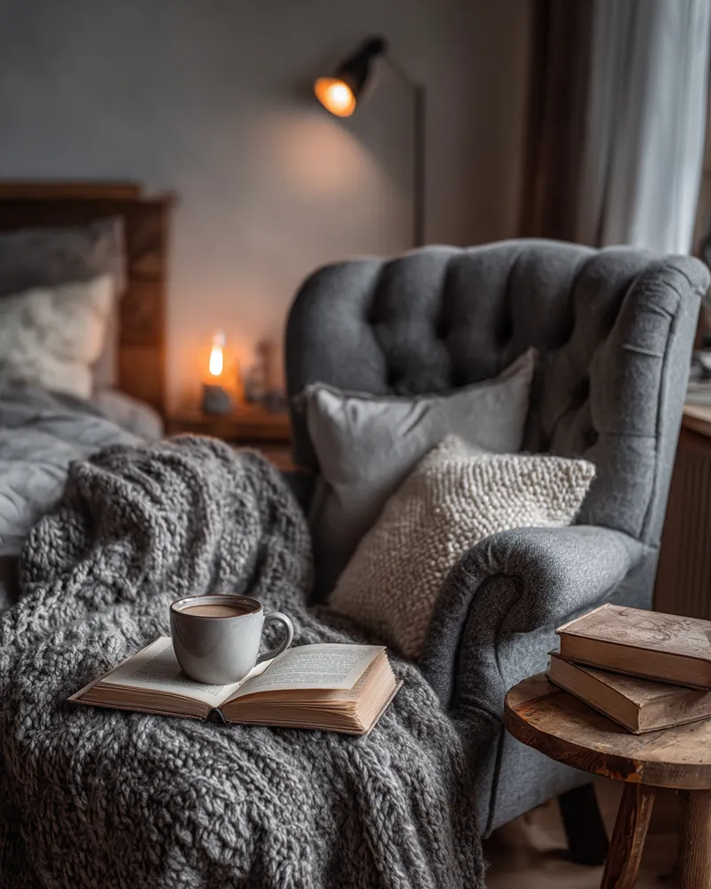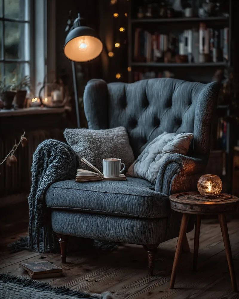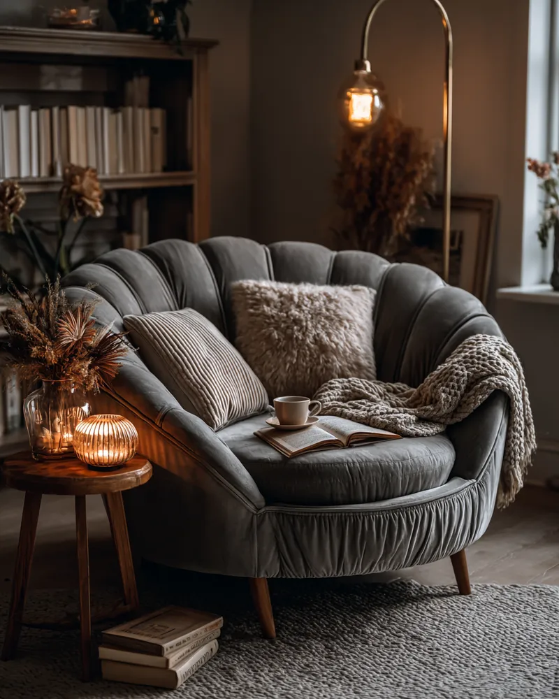 * **Comfortable Seating:** Plush armchairs, a reading bench, or a velvet sofa create inviting spaces.