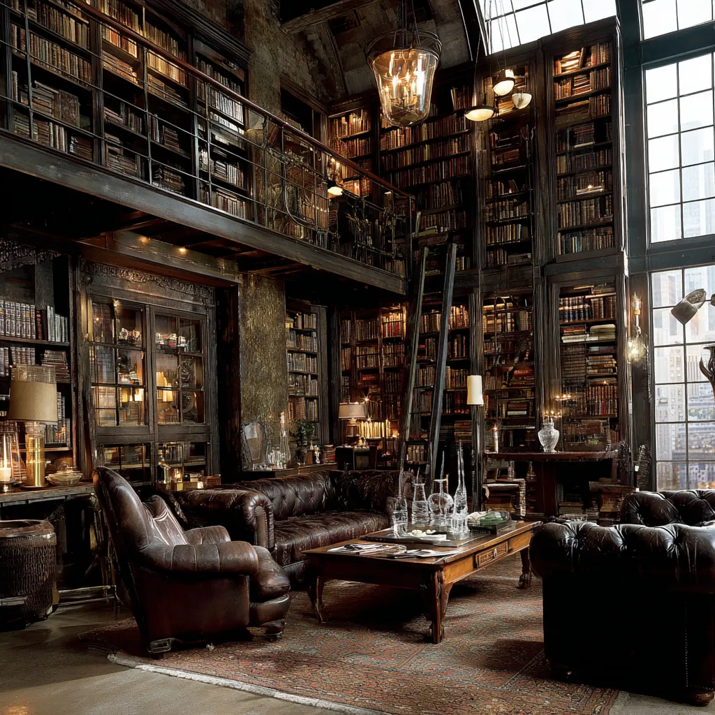 * **Classic Accents:** Antique rugs, framed literary prints, globe, or a vintage desk.