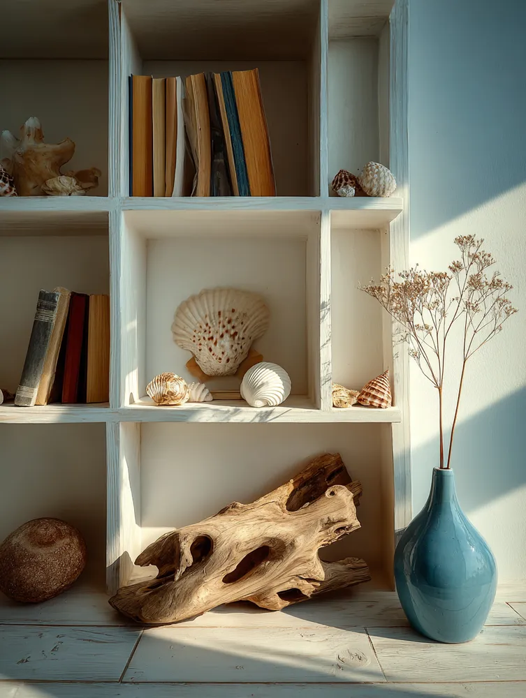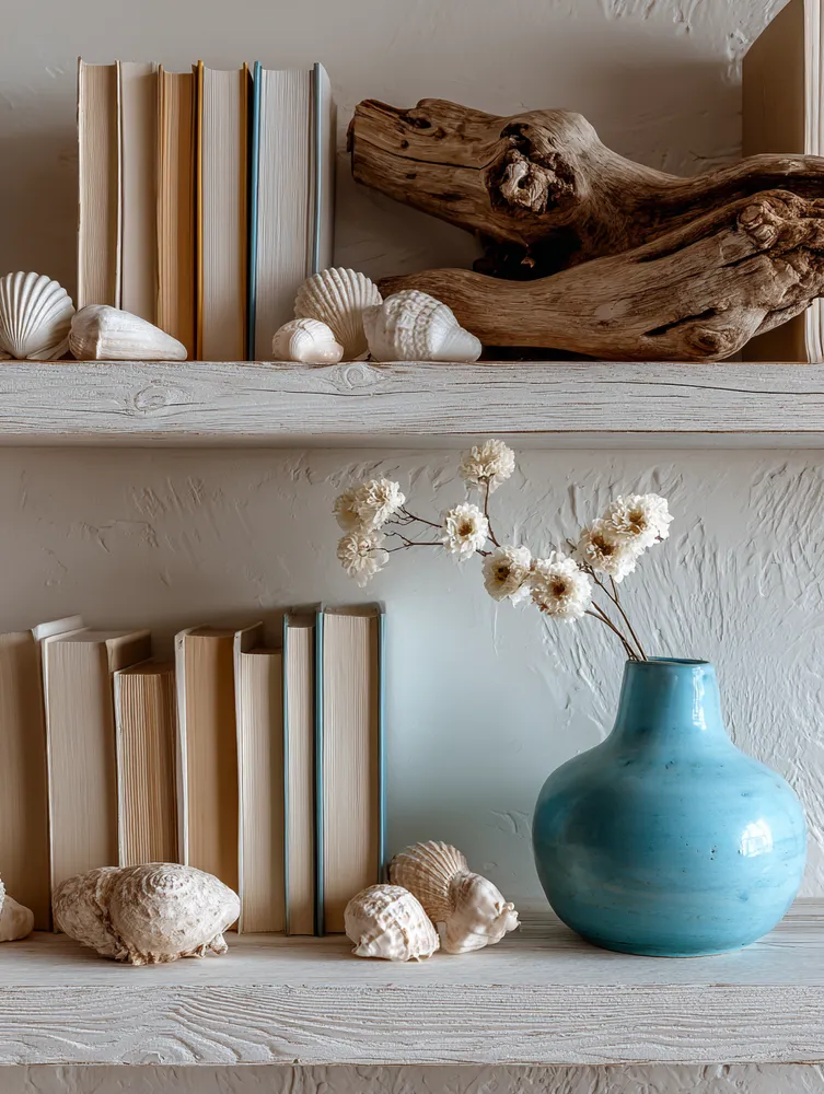 🌊 Styling Your Shelves: Coastal Bookshelf Magic