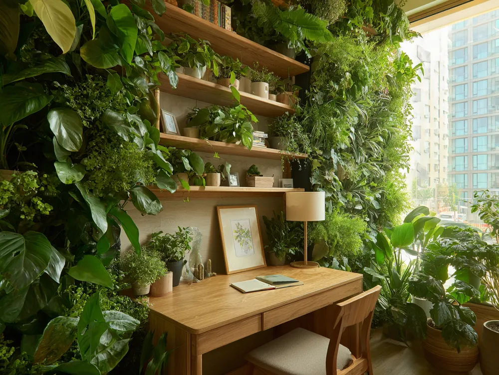 Need a quiet place to focus or get creative? Design a biophilic study nook! Integrating nature into your workspace can significantly improve concentration and reduce stress. Let's create a calming haven for productivity. ✨ Key Elements for Your Nook: * **A Living Wall Segment:** Even a small panel brings life. * **Abundant Natural Light:** Position your nook near a window. * **Wood-Grain Desk:** Or add wooden accessories. * **Nature-Inspired Decor:** Botanical prints, wood carvings. * **Calming Scents:** Diffuse lavender or rosemary essential oils. 💧 Find your focus surrounded by nature's calm. Save these ideas for your perfect study spot! 😌💚