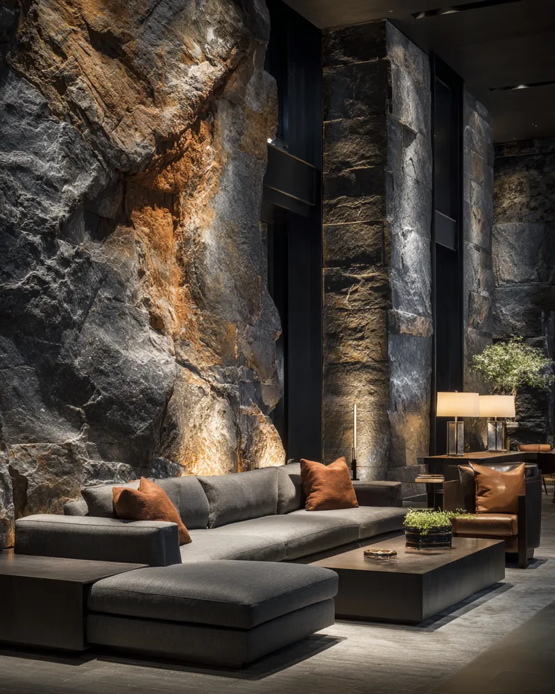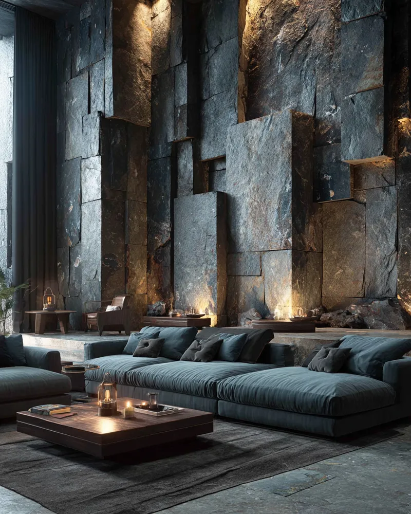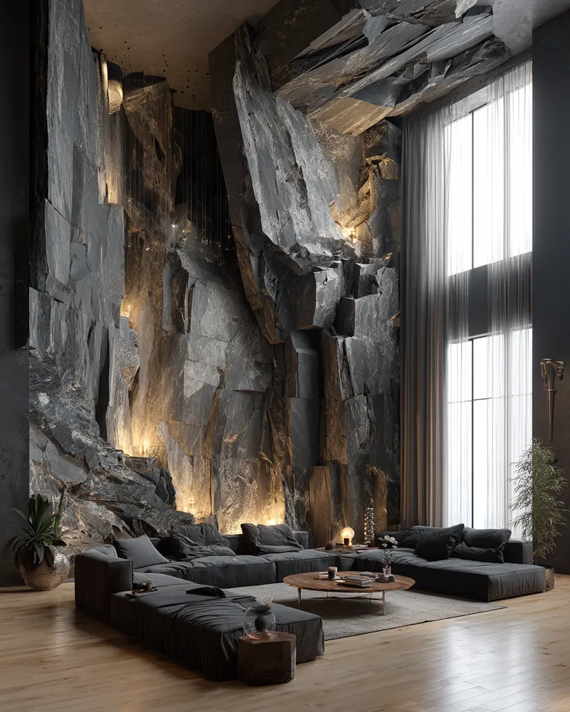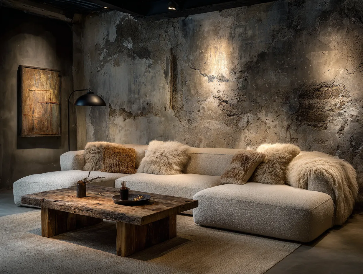 Living Room Luxury: The Power of a Concrete Feature Wall 🧱