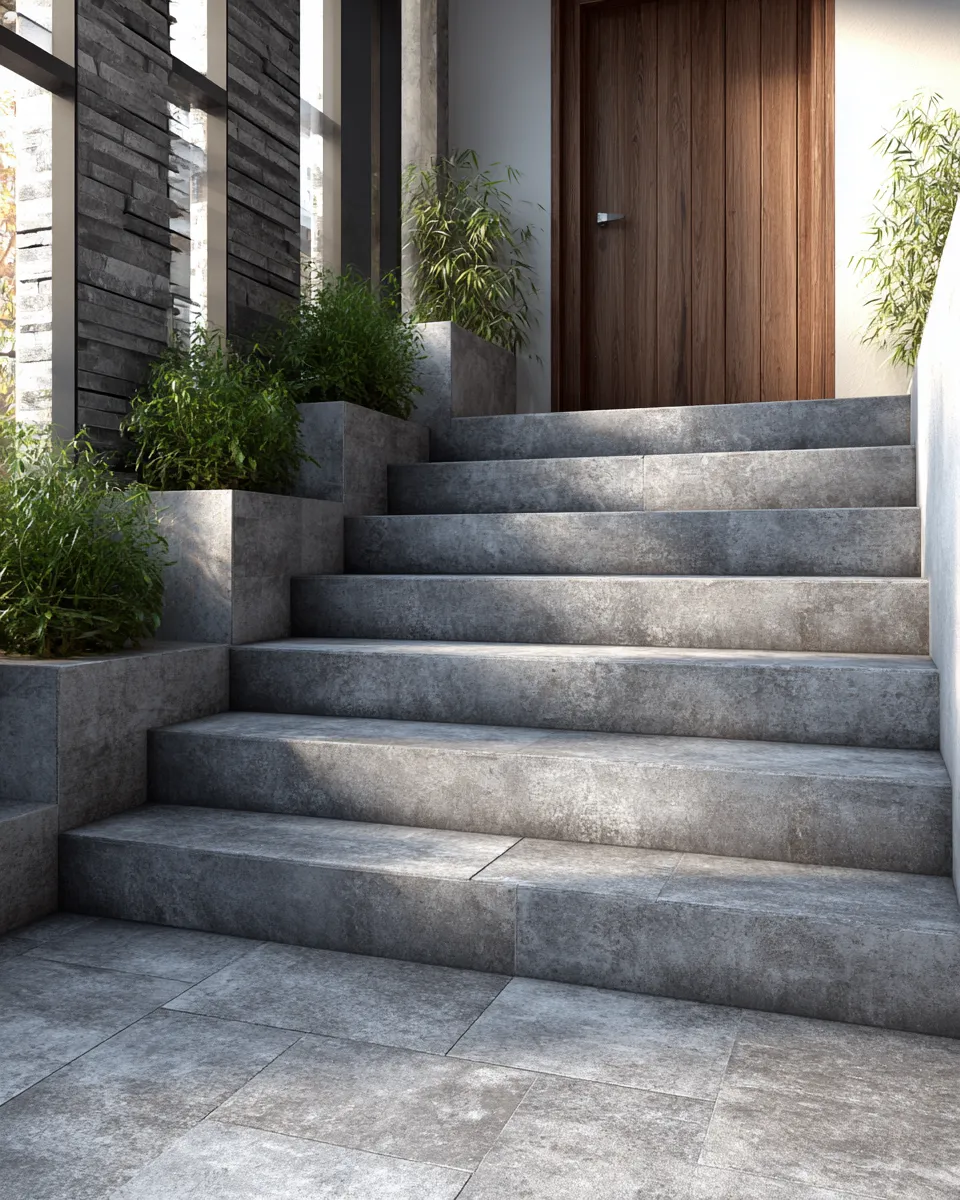 Don't underestimate the impact of exterior details! Concrete steps offer a durable and stylish entryway solution. Whether polished smooth or showcasing a rougher texture, concrete steps provide a strong, modern foundation for your home. They lend an industrial-chic vibe that can be softened with planters and greenery. Consider contrasting them with warm wood accents on your door or railing. They create a sense of arrival that is both sophisticated and welcoming, perfectly embodying the 'Chic Concrete' aesthetic. Great first impressions! 🌿💡 #concretesteps#exterior design #modernhome#chicconcrete#entrywaydecor#curbappeal#architecturaldetails#concretedecor#homeexteriorideas#modernexterior