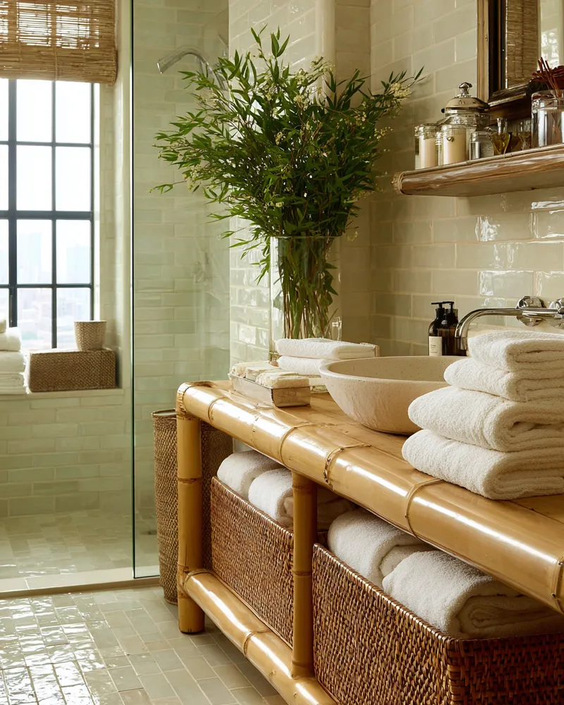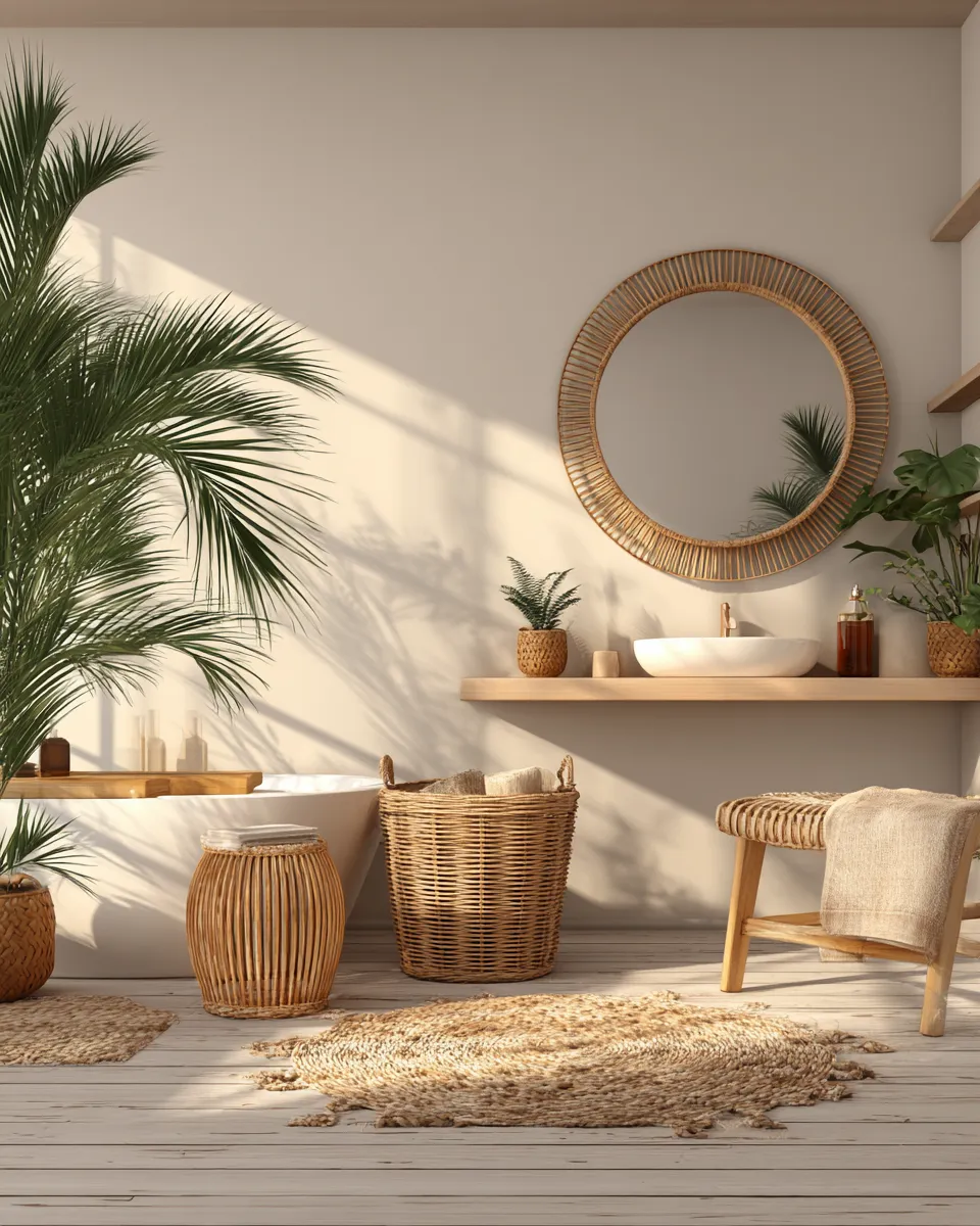 Bring the serene, laid-back elegance of nature into your bathroom with rattan accents! ✨ Even small touches like a woven storage basket, a rattan mirror frame, or a plant stand can transform the space. These natural materials add warmth, texture, and a hint of boho-chic style, making your bathroom feel like a spa-like sanctuary. Embrace organic elements for a refreshing update. It's about creating a calm and beautiful personal retreat. Save this for your bathroom refresh inspo! 🌿 #rattan#bathroomdecor#naturaltextures#bohostyle#rattanideas#bathroomideas#homedecor#coastalvibes#spaathome#organicdesign