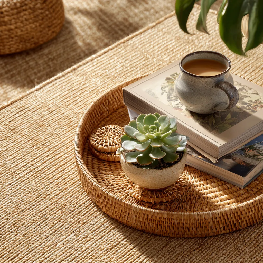 Elevate your living room with a boho-chic coffee table styled to perfection using rattan accents! ✨ Think woven trays, rattan coasters, and decorative rattan boxes. These natural elements add texture, warmth, and a touch of laid-back elegance. Combine with greenery, a favorite book, and maybe a scented candle for the ultimate cozy vibe. It’s an easy way to bring organic beauty and handcrafted charm to the heart of your home. Save this for your coffee table styling inspo! 🌿 #rattan#coffeetablestyling#bohodecor#naturalaccents#rattanideas#stylingideas#homedecor#livingroomdesign#laidbackstyle#interioraccents