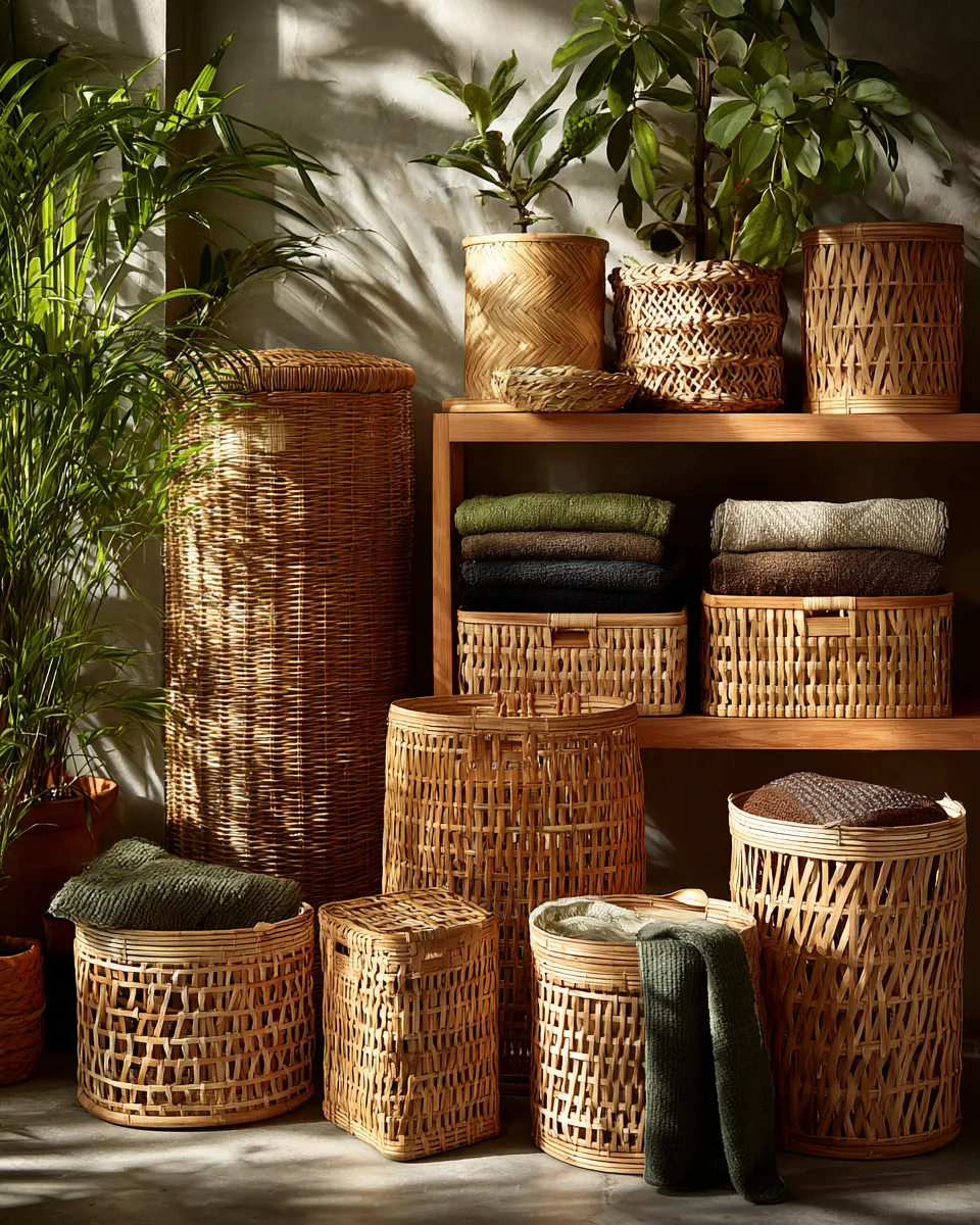 Woven Storage Solutions: Rattan Baskets for Boho Chic