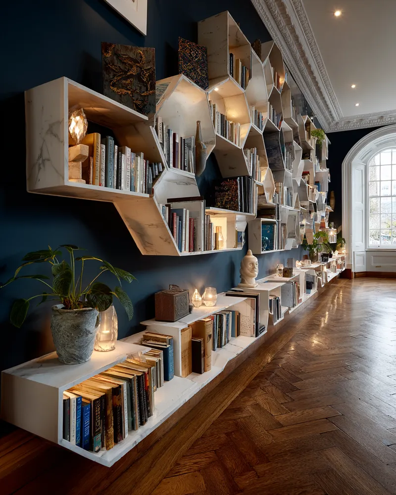 Turn your book collection into a captivating art installation with sculptural bookshelves. At Sculptural Living Spaces, we believe shelving can be more than just functional; it can be a design statement. Explore options with asymmetrical designs, interlocking modules, or unusual shapes that add visual intrigue. Think of units made from bent metal, creatively arranged wooden planks, or even 3D geometric structures. These shelves not only store your books but also frame them, creating a dynamic and artistic display that reflects your personality and taste. Embrace bookshelves that are as engaging as the stories they hold. ✨
