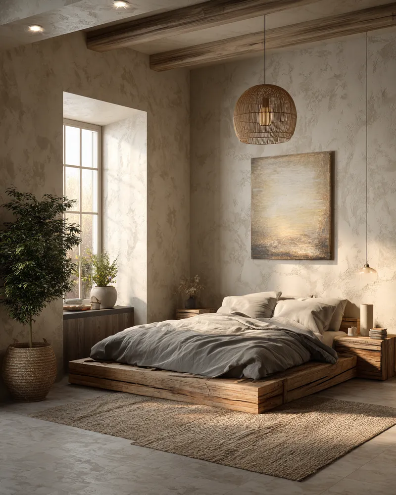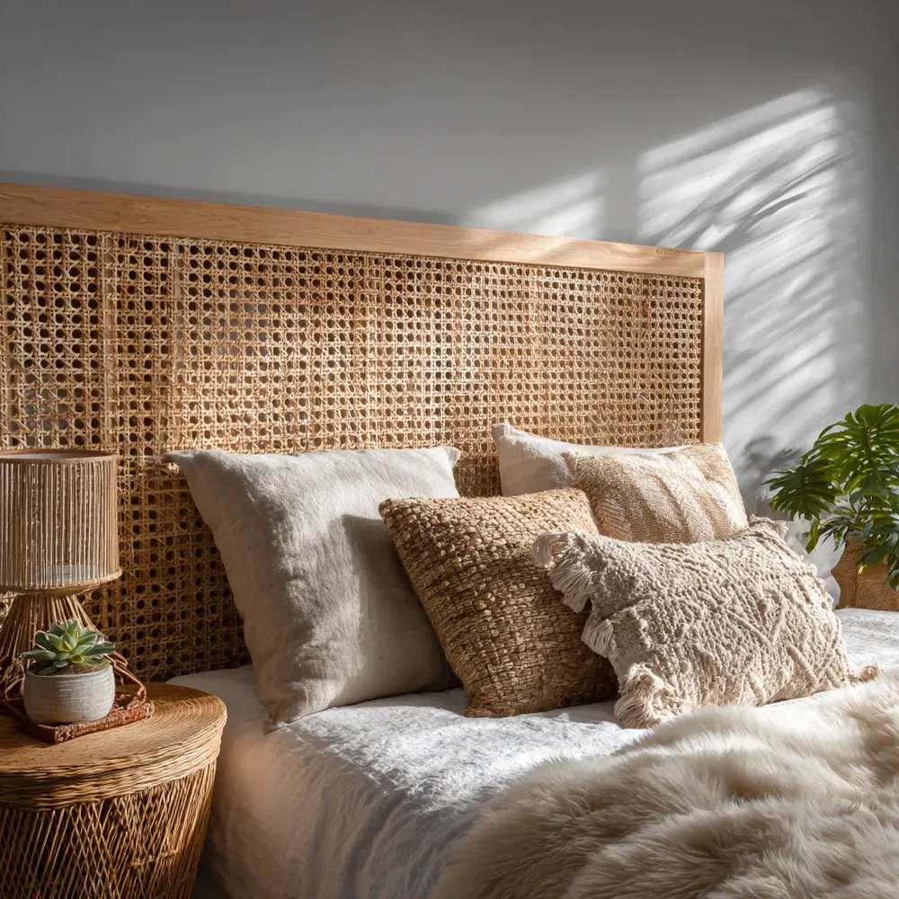 Bedroom Bliss: Woven Accents for a Serene Escape! 🌿