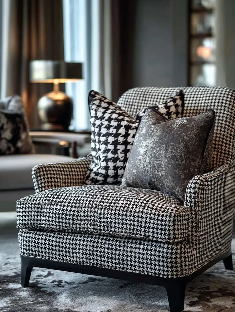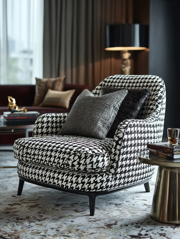 For a touch of timeless sophistication, you can't go wrong with houndstooth! This classic pattern adds a refined and sharp edge to any design. Use it on an accent chair, a sleek pillow, or even a statement rug to ground your space. It pairs beautifully with modern furnishings as well as vintage pieces. Don't limit yourself to black and white; explore houndstooth in richer tones like deep burgundy or sophisticated grey for a contemporary twist. It's a pattern that exudes confidence and enduring style. 🌟