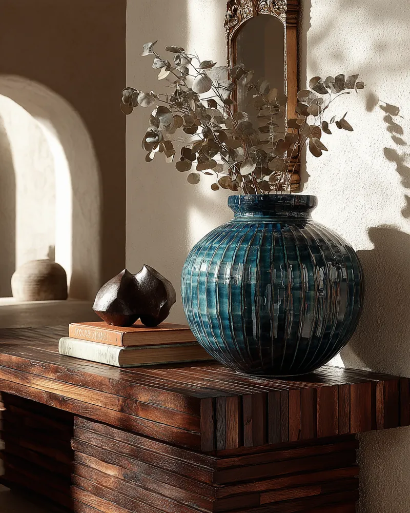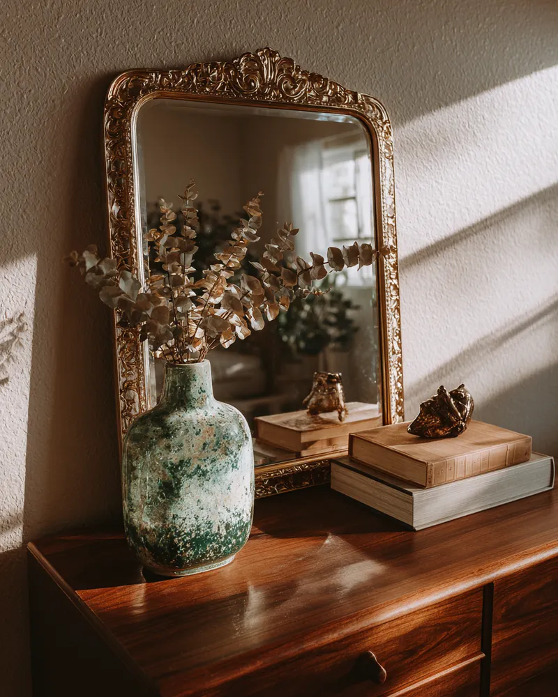 My favorite way to infuse personality into an entryway is through a beautifully styled console table. Think of it as a curated vignette of history! ⏳ I love mixing genuine vintage finds with a few contemporary touches for that perfect balance. For my mid-century modern aesthetic, I lean towards tapered leg tables, often in walnut or teak. Here's a quick guide to styling your own: ✨ **Key Elements:** A statement mirror, a vintage ceramic vase (think unique glaze!), a stack of antique books, and a subtle sculptural piece. ✨ **Layering is Key:** Don't be afraid to stack books or place smaller objects in front of larger ones. ✨ **Personal Touch:** Add a personal memento or a framed vintage photograph for that extra story. Save this for your next console table styling project! 🤎