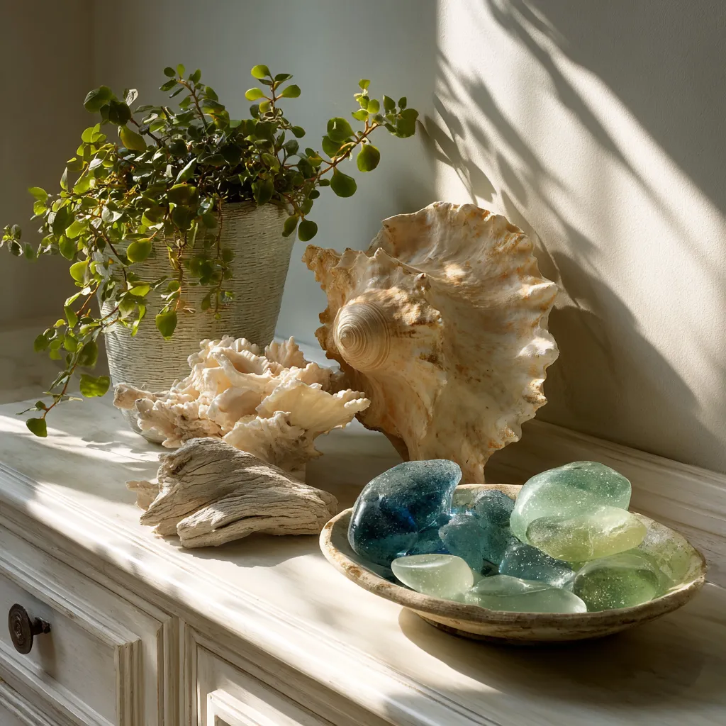 It's the small details that truly bring a coastal vibe to life! Think beyond just blue and white. Incorporate elements that mimic the natural beauty of the shore: shells, sea glass, coral, and driftwood. Use woven textures in baskets, rugs, and wall hangings for warmth and depth. Lanterns add a cozy glow, and botanical prints or artwork depicting seascapes are perfect finishing touches. The aim is to create a space that feels authentically connected to the coast, evoking peace and tranquility. ๐ What are your favorite coastal accents? #CoastalDecorIdeas#HomeAccentsIdeas#ShellDecorIdeas#SeaGlassDecorIdeas#WovenDecorIdeas#NauticalDecorIdeas#InteriorDetailsIdeas#BeachHouseDecor#DecorTips#CoastalInspiration