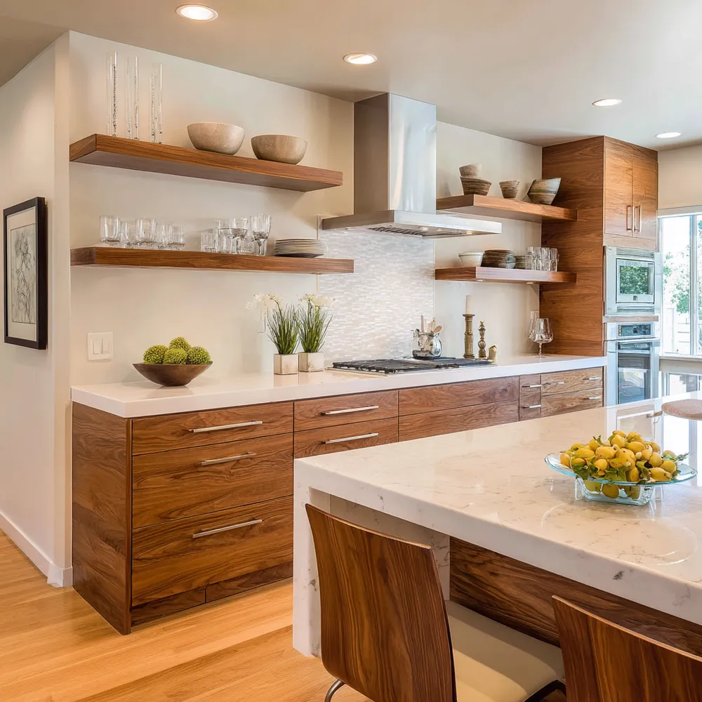 Infuse your kitchen with the enduring style of Mid-Century Modern design through its cabinetry. It’s about sleek lines and smart functionality. ✨ Opt for flat-panel cabinet doors with minimalist hardware – think simple bar pulls or recessed handles. Warm wood veneers like teak or walnut are classic choices, offering natural beauty and depth. 🪵 Consider a mix of closed cabinets and open shelving to display your favorite ceramics or glassware. Integrate cleverly designed pull-out drawers and organizers for ultimate efficiency. 🍽️ Let the simplicity of the cabinetry speak for itself, creating a timeless and inviting culinary space. Save for your MCM kitchen upgrade!