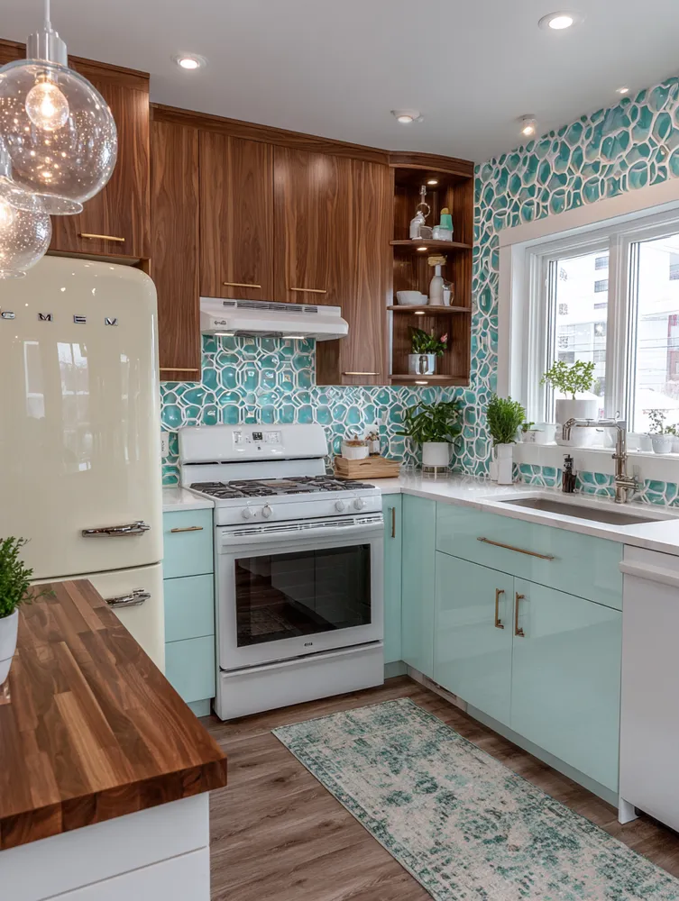 The Art Deco Kitchen: Geometric Tiles & Metallic Shine ✨