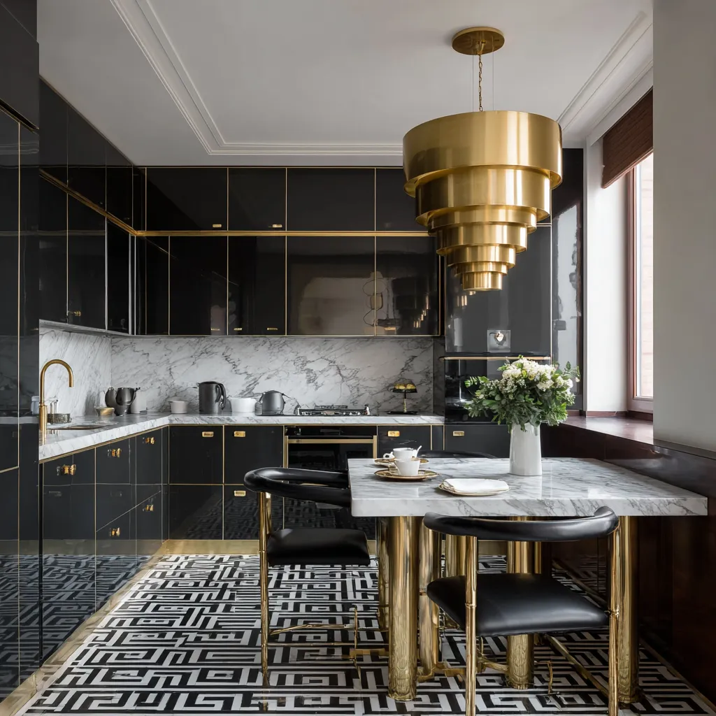 The Art Deco Kitchen: Geometric Tiles & Metallic Shine ✨