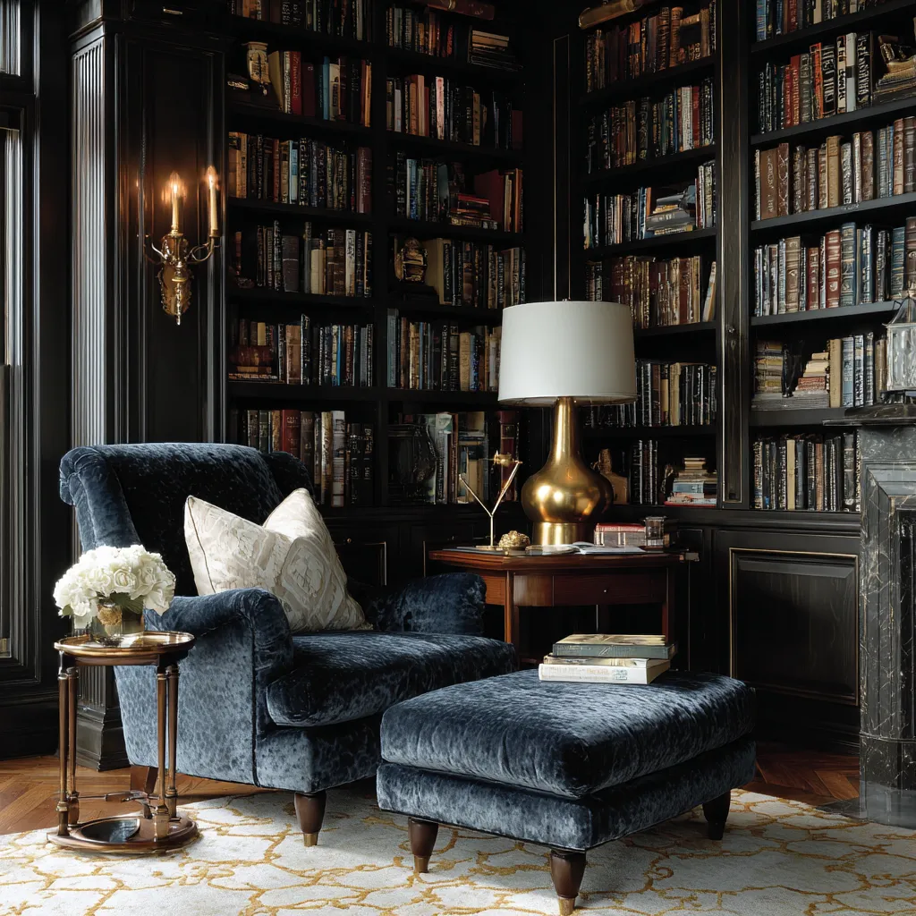 Create an Art Deco-inspired home library that oozes sophisticated charm and encourages quiet contemplation. 🌟 Think rich woods like mahogany or walnut for bookshelves and statement furniture. Geometric patterns are your friend – consider a rug with a bold graphic design or wallpaper with stylized motifs. Plush, comfortable seating, like a velvet armchair or a chaise lounge, is essential for hours of reading. Task lighting is crucial; an iconic desk lamp or elegant wall sconces will provide focused illumination. Add metallic accents through bookends, lamps, or decorative objects for that essential Art Deco shimmer. ✨ #ArtDecoLibraryIdeas#HomeLibraryIdeas#StudyRoomIdeas#BookLoverIdeas#ElegantInteriorsIdeas#ArtDecoStyle#RichWood#GeometricPatterns#CozyReadingNook#SophisticatedSpace