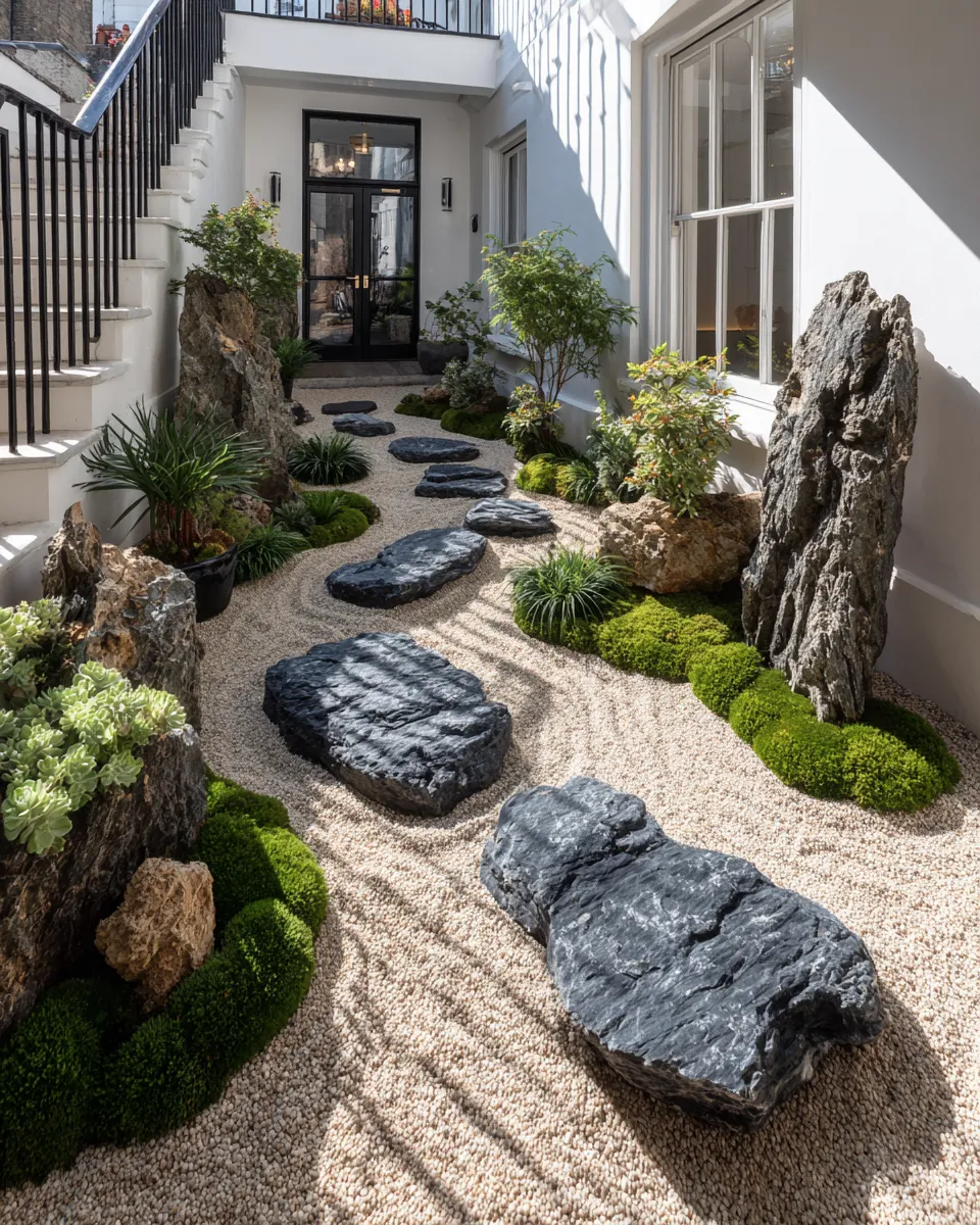 Create a journey of tranquility within your own garden by designing captivating Zen-inspired pathways. These aren't just for walking; they're integral to the overall design, guiding the eye and inviting contemplation. Think minimalist layouts with natural materials like raked gravel, large stepping stones, or smooth river pebbles. Interspersed with carefully placed moss, succulents, or minimalist planting, these paths become works of art. The gentle sound of gravel underfoot can be incredibly soothing. Guide your guests (and yourself) towards peace. ✨💧 #ZenGardenPathIdeas#GardenPathwayIdeas#TranquilGardenIdeas#LandscapePathIdeas#MinimalistGardenIdeas#SteppingStoneIdeas#GardenDesign#CalmSpaces#OutdoorLiving#SereneGardens