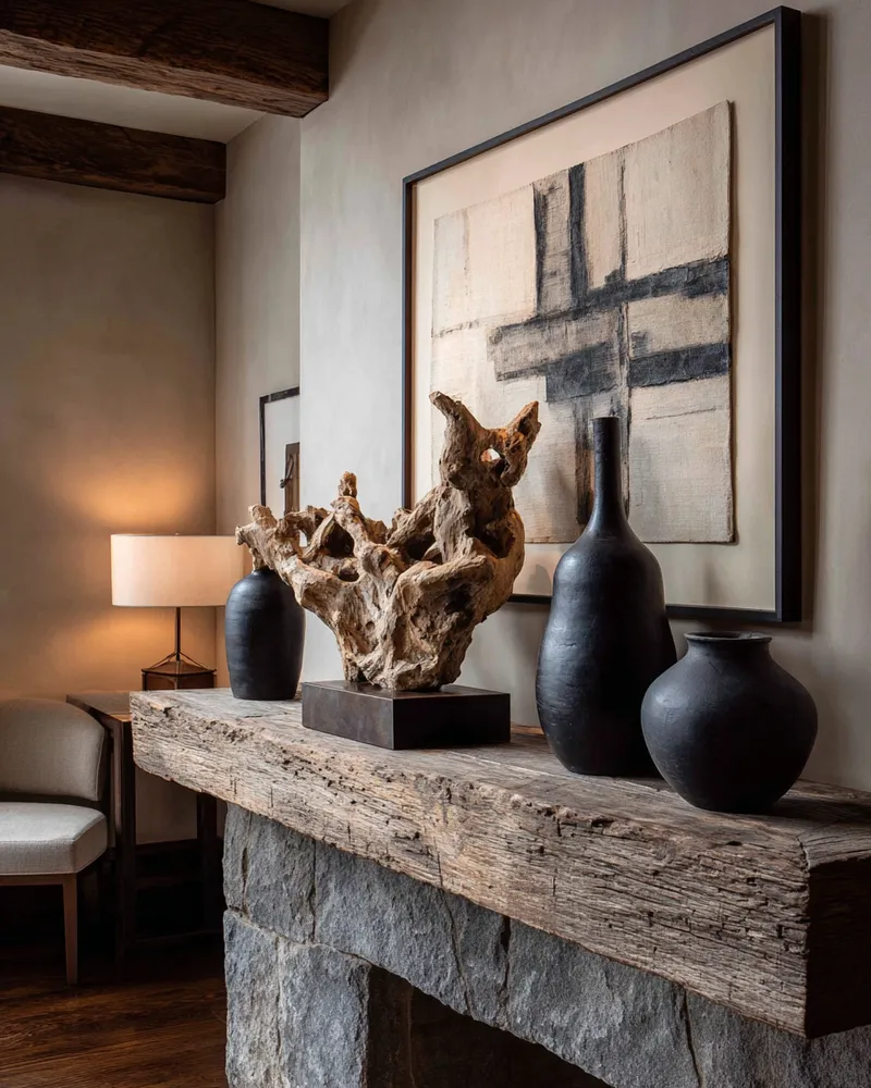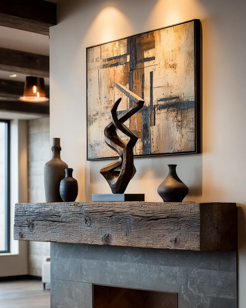 Your fireplace mantel is a prime canvas for artistic expression. Sculptural Living Spaces believes it should be a focal point that draws the eye and adds personality to your room. Move beyond conventional arrangements and consider how objects with sculptural qualities can be displayed. A striking piece of abstract sculpture, a cluster of beautifully shaped ceramic objects, or even a framed art piece with strong lines can create visual impact. Natural materials like driftwood or aged metal add texture and warmth. Remember to balance your display – don't over-clutter, allow each piece space to breathe and command attention. 🖼️