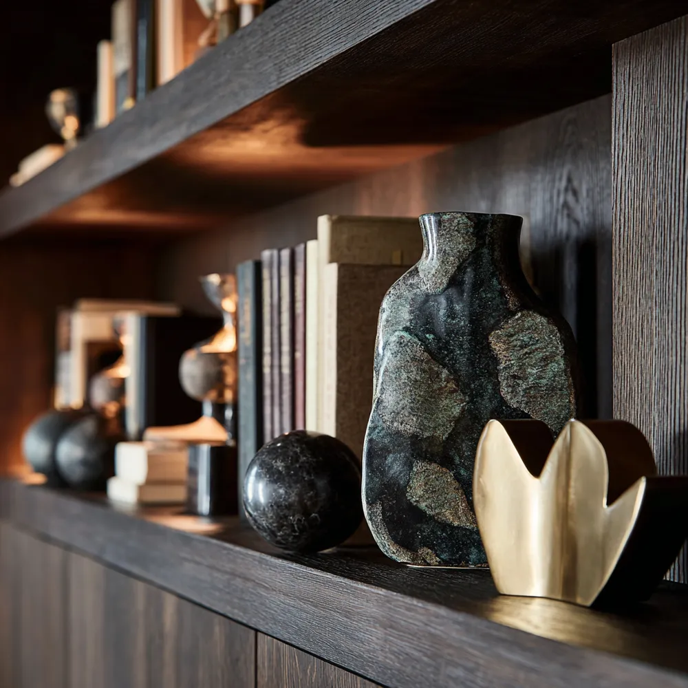 It's often the smallest details that create the biggest impact in 'Sculptural Spaces.' Accents are your chance to inject personality and artistic flair. Think unique vase shapes with organic curves, heavy ceramic objects with interesting glazes, or door hardware that feels like jewelry for your cabinetry. Even a beautifully designed throw pillow with an abstract pattern can act as a small-scale sculptural element. These pieces, strategically placed, add layers of interest without overwhelming the space. They are the finishing touches that elevate your design. Save these ideas for your next styling session! 💫
