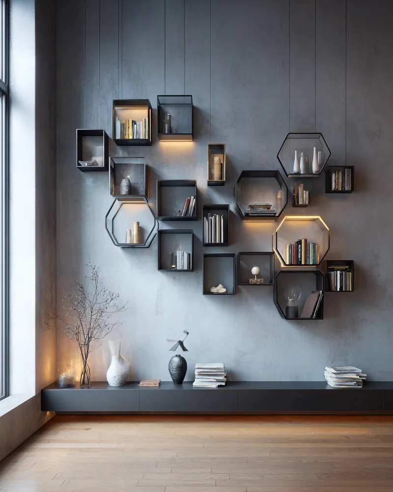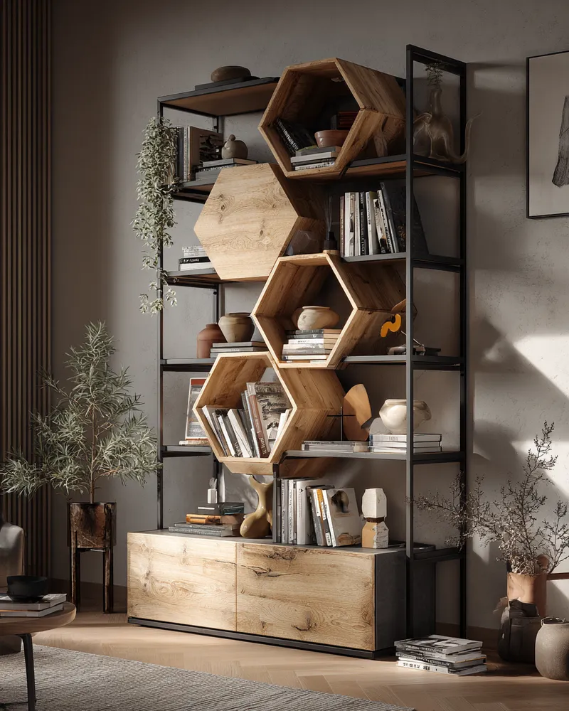 Sculptural Shelving: Functional Forms with Geometric Flair 📦