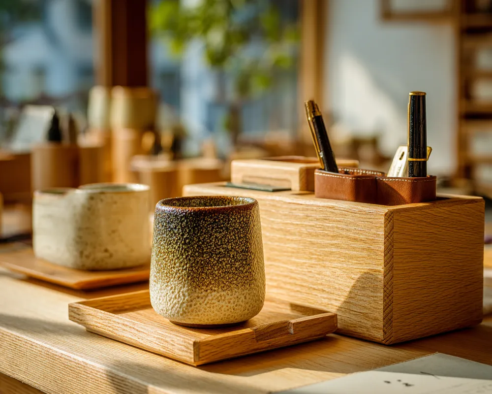 * **Minimalist Sculptural Organizers:** Pen holders, paperweights, and tray sets with clean lines and unique shapes.