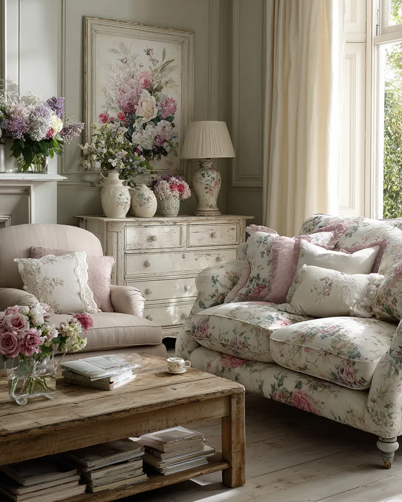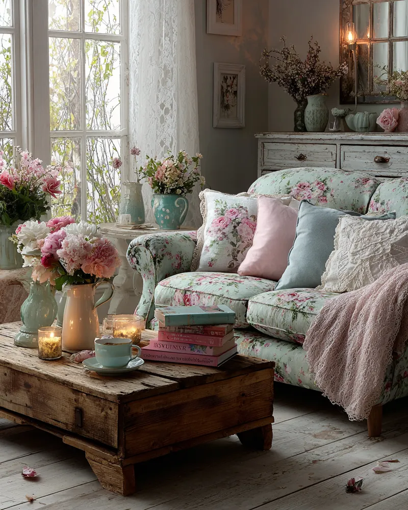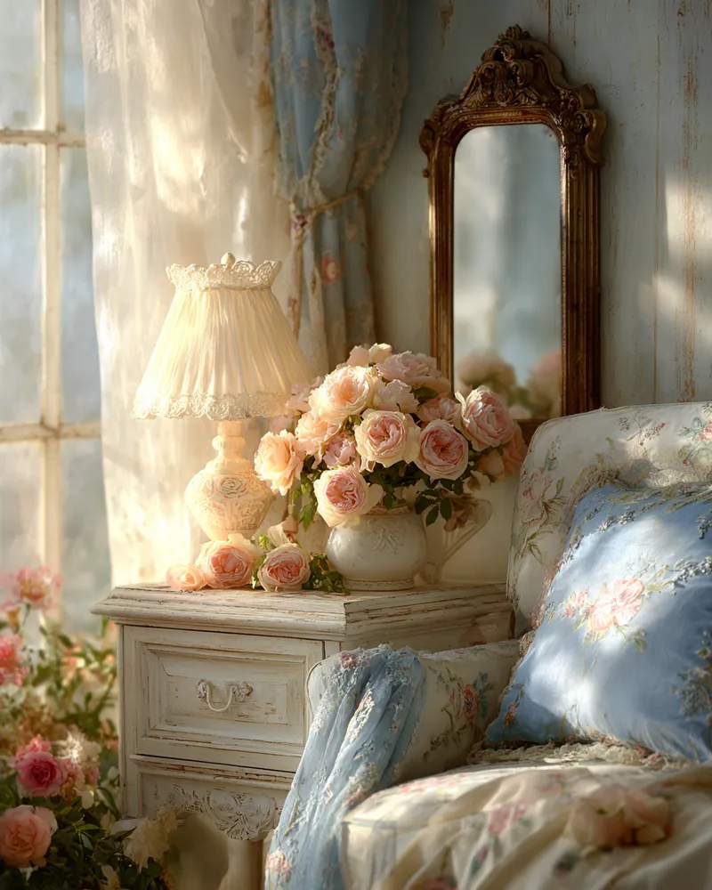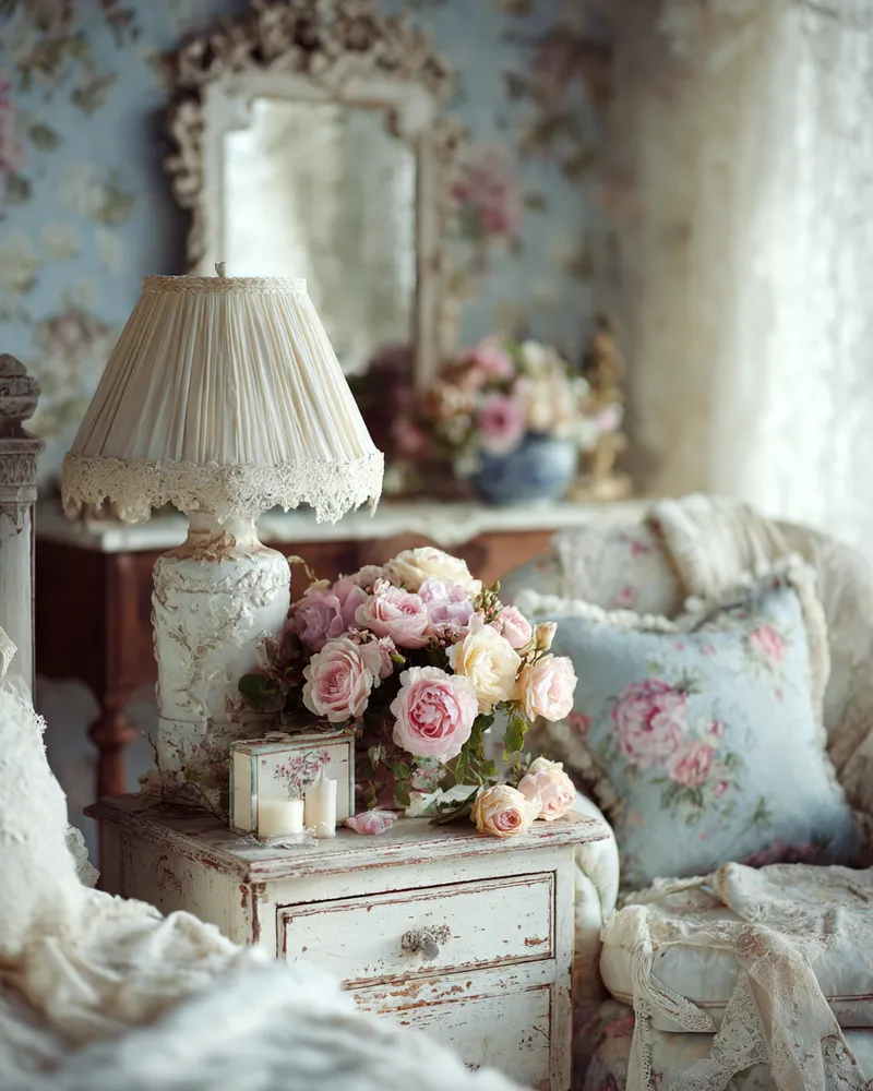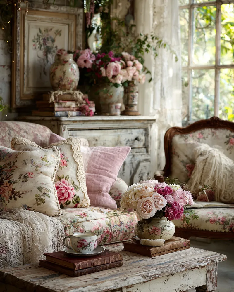 Think of pieces with gently distressed paint finishes, floral patterns in muted pastels, antique mirrors, and an abundance of soft textiles like lace and linen. It's a style that celebrates imperfection and brings a gentle, inviting atmosphere.