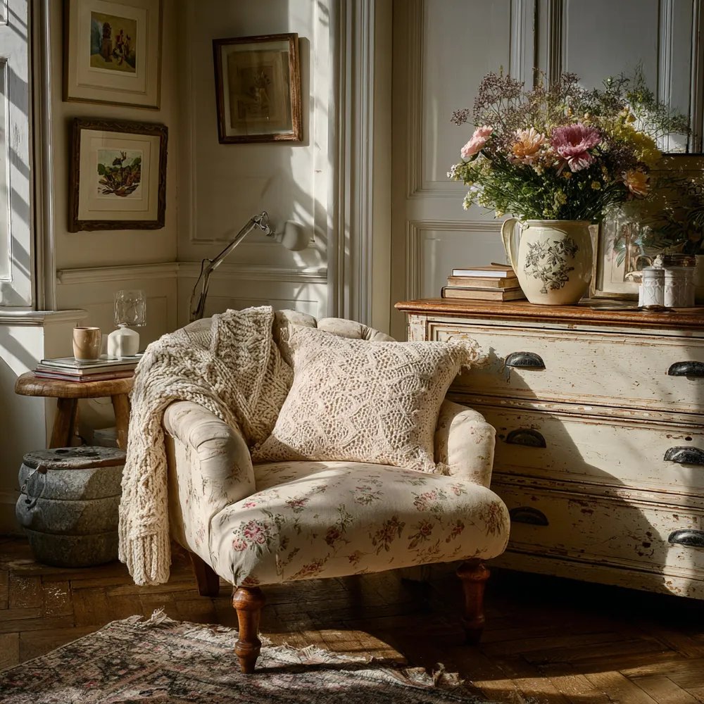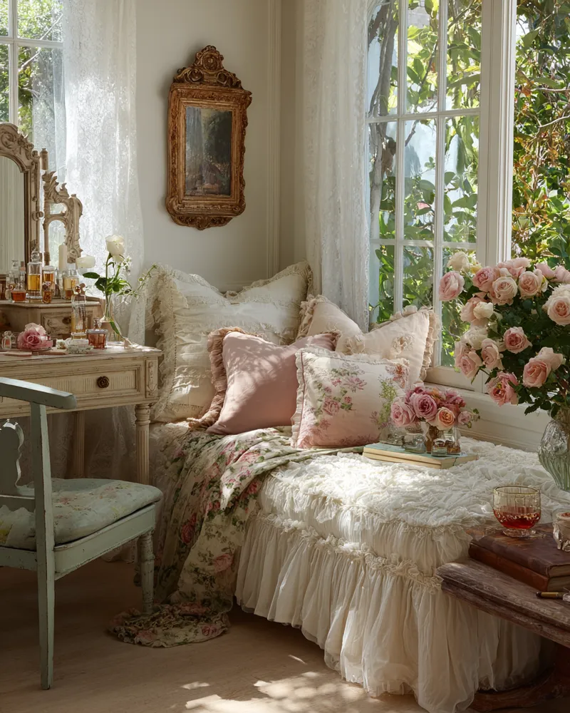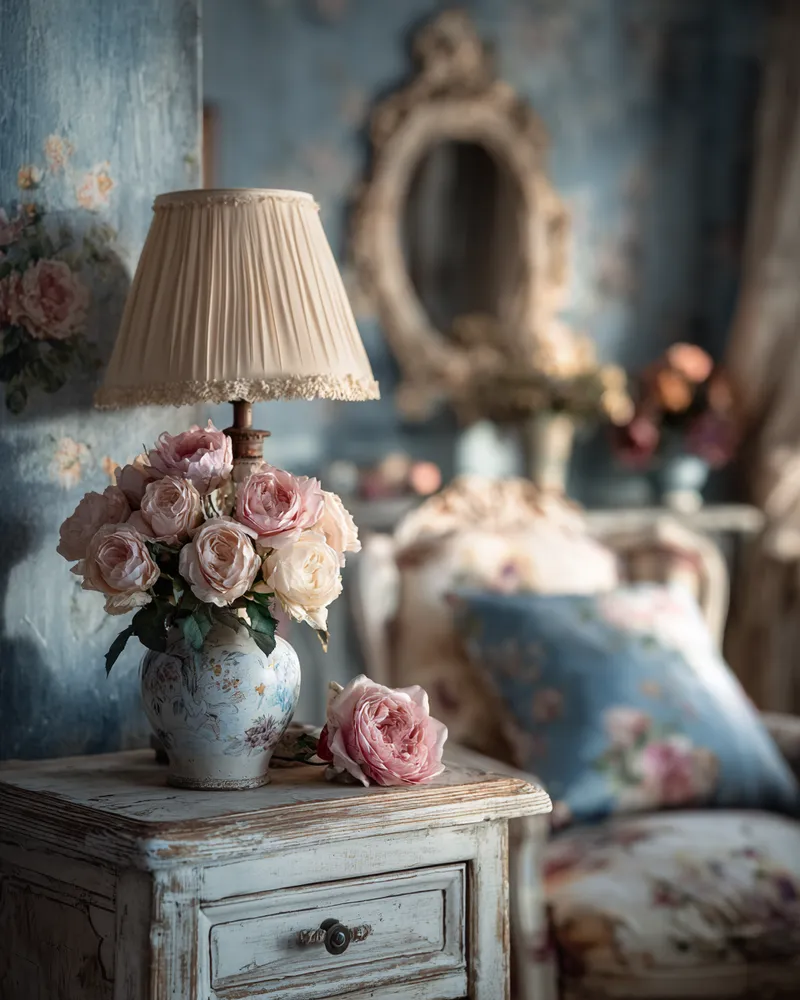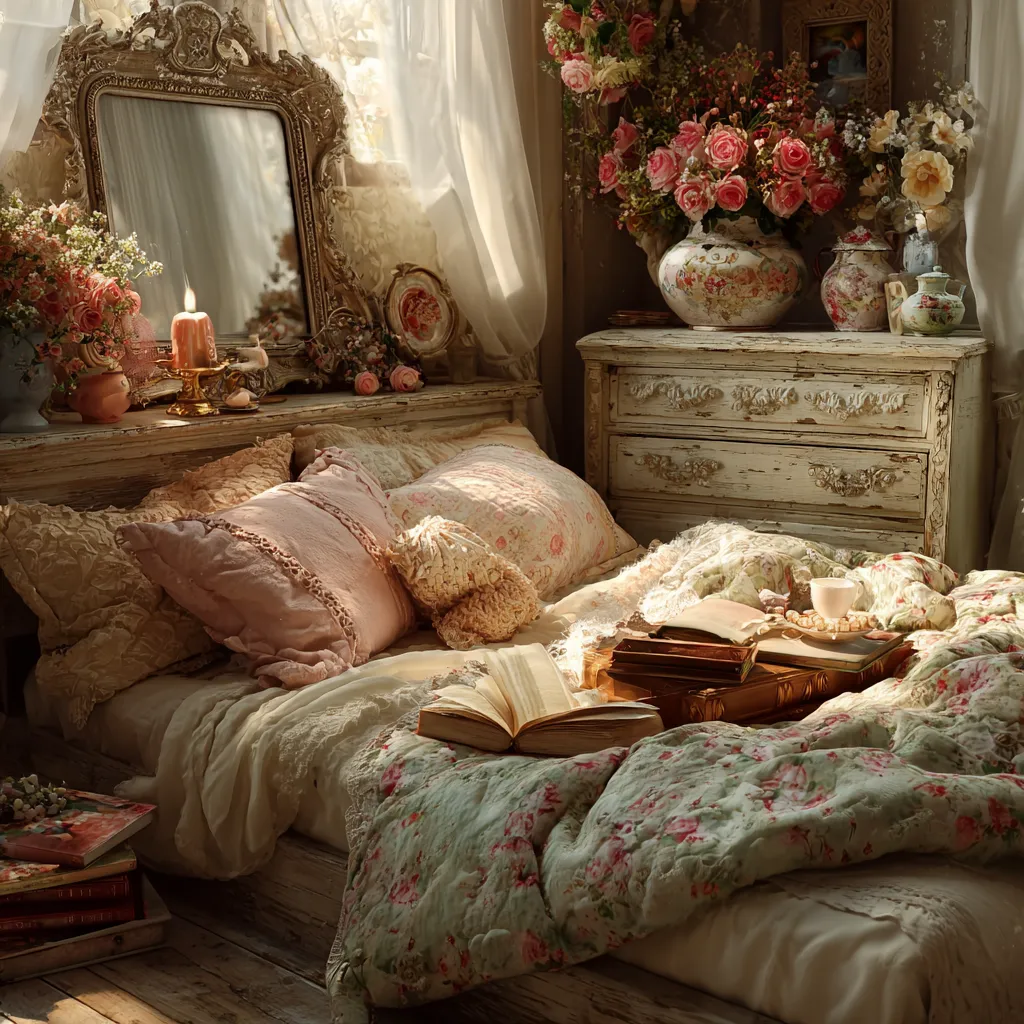 Think of pieces with gently distressed paint finishes, floral patterns in muted pastels, antique mirrors, and an abundance of soft textiles like lace and linen. It's a style that celebrates imperfection and brings a gentle, inviting atmosphere.