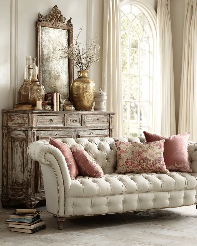 * **Antiqued Desk:** A vintage-style desk with carved details or a weathered finish.